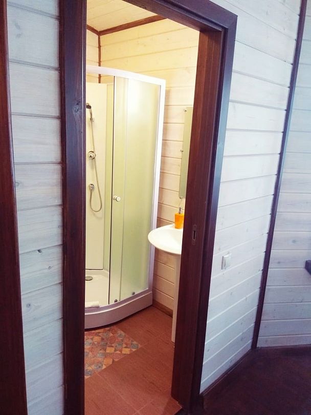Здесь есть все необходимое: гостиная комната с набором мягкой мебели и обеденной зоной, три спальные комнаты, две туалетные комнаты с душевой кабиной. Рядом с коттеджем оборудована зона барбекю с мангалом.