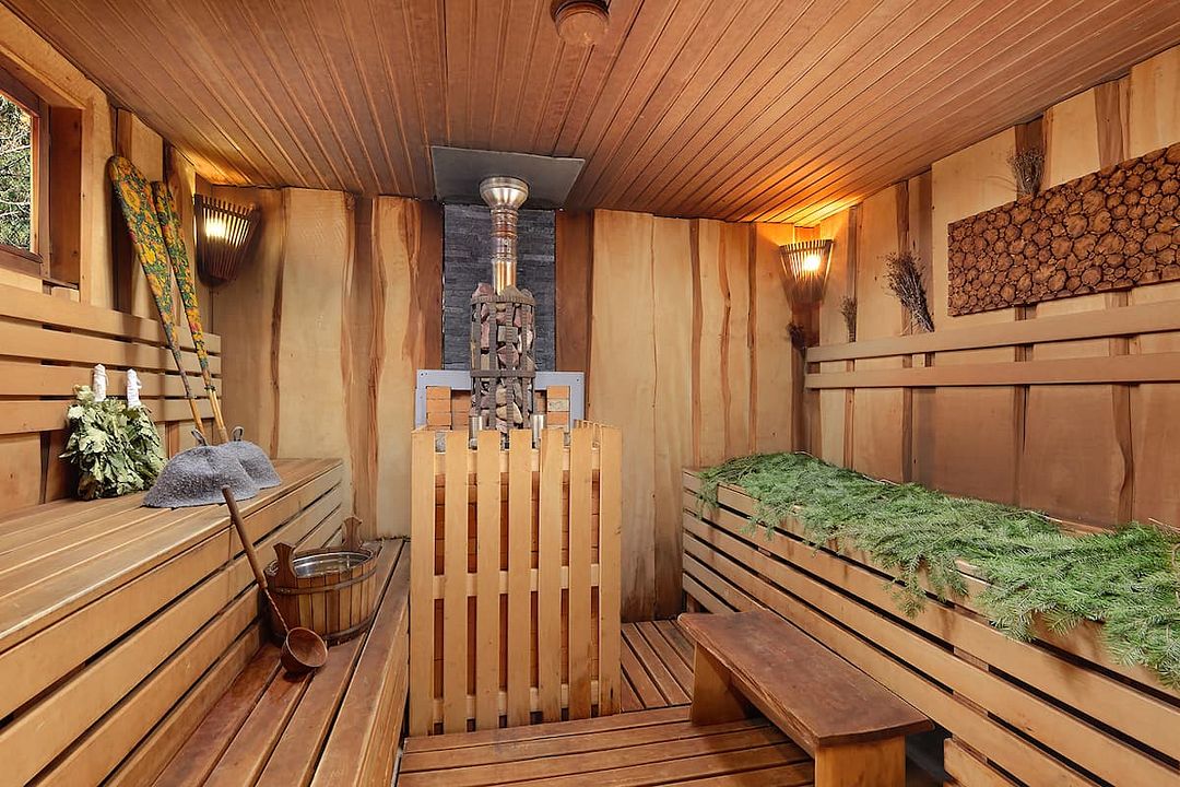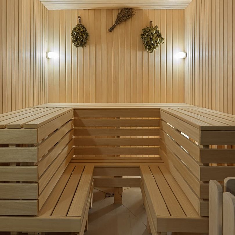 Spa-зона включает две парные: классическую финскую сауну и ароматную травяную парную. Здесь также предусмотрена стильная зона для отдыха, где гости могут расслабиться после процедур и насладиться чаепитием с близкими. Для охлаждения после горячих бань предусмотрены купели, а смельчаки смогут испытать контрастные водные процедуры с помощью обливных ведер.