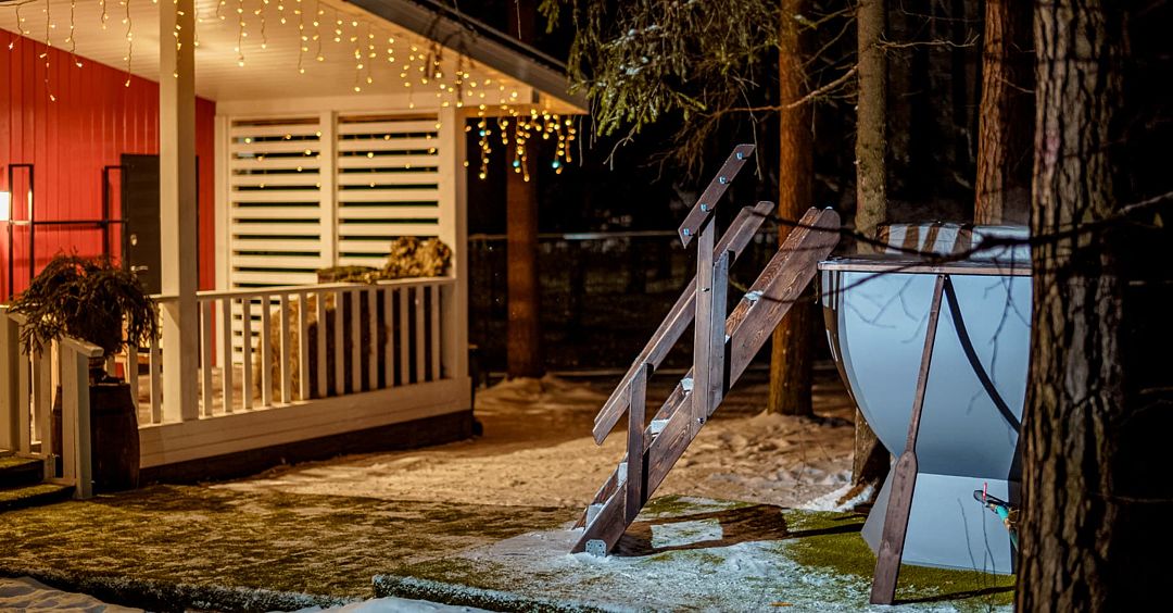 Читать полностьюВ теплое время года гости могут наслаждаться кедровой купелью с холодной родниковой водой, доступной при аренде красной скандинавской бани. Эта услуга включена в стоимость для компании до четырех человек, с возможностью добавить дополнительного гостя за отдельную плату.