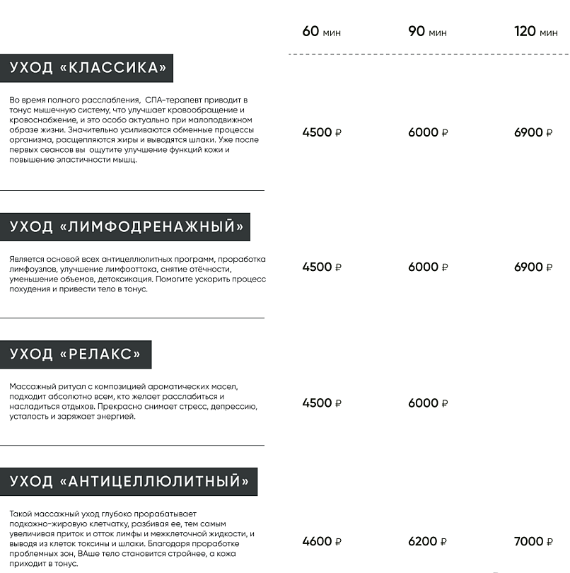 - посещение SPA-зоны до 4 человек — 6000 ₽ / 2 часа;