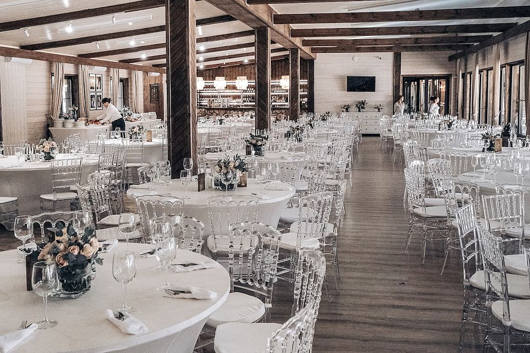 Банкетный зал «Кантри» — это стильное пространство, созданное для тех, кто ценит комфорт. Теплый и приглушенный интерьер способствует расслабляющей атмосфере, а панорамные окна предлагают живописный вид на окрестности.