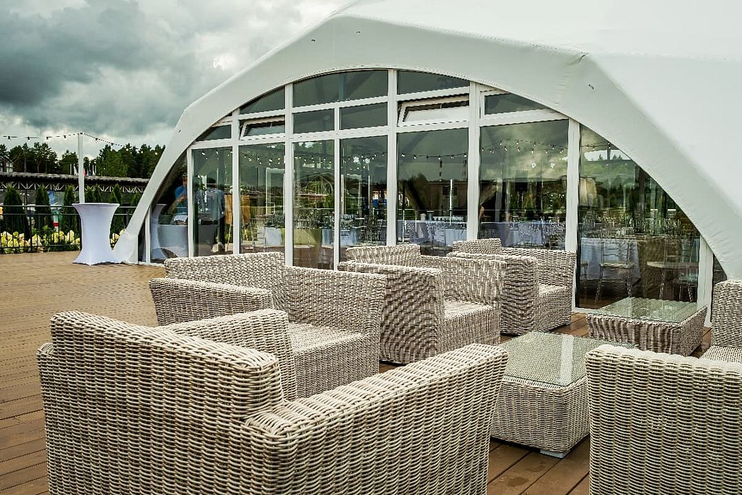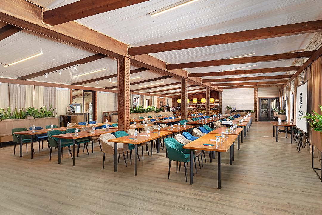 Это идеальное место для проведения корпоративных мероприятий или семейных торжеств, позволяющее наслаждаться природой и окружением. Зал вмещает до ста гостей, что делает его прекрасным выбором для небольших и средних компаний.