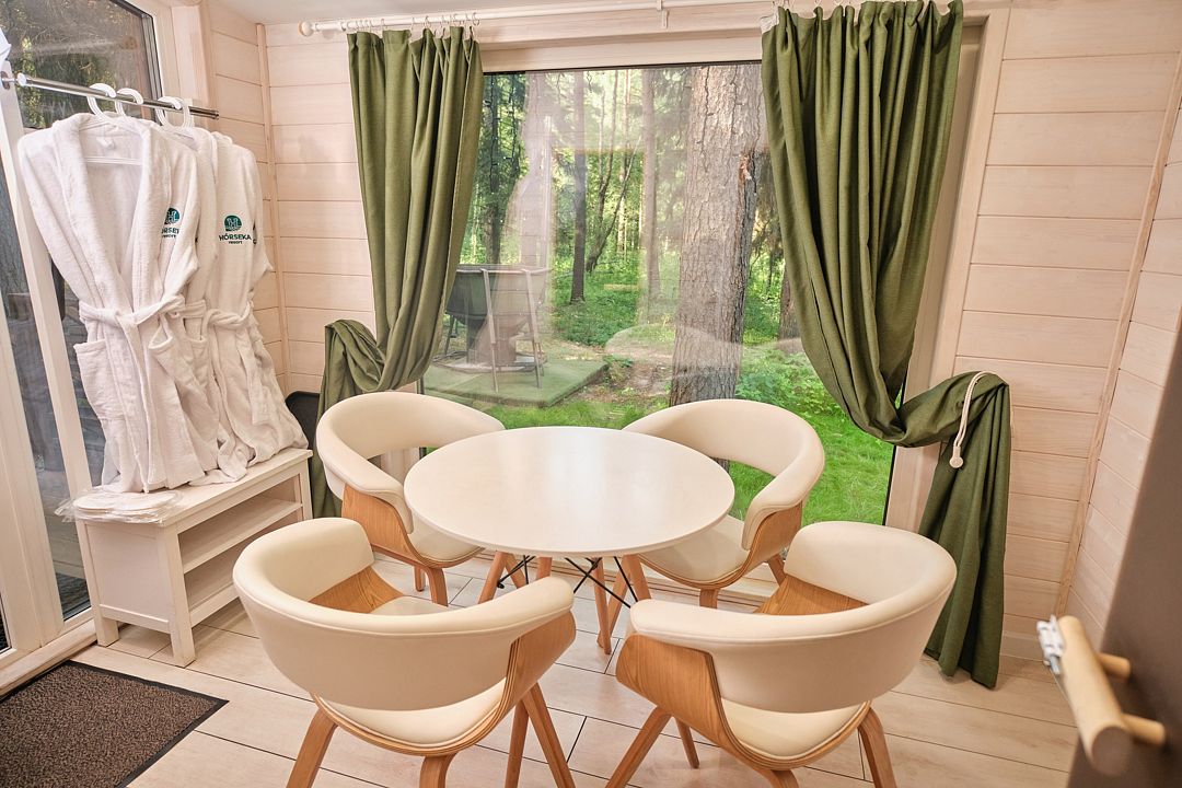 - Посещение сауны на открытом воздухе с видом на лес (панорамная сауна с раздевалками, феном, предоставляются халаты) до 28.12.2025