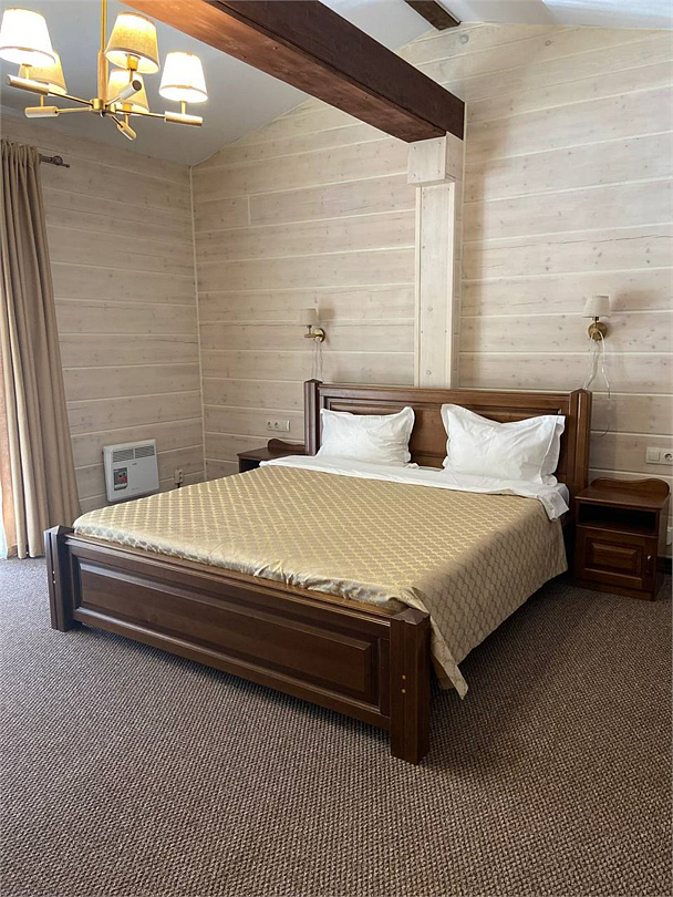 Мы предоставляем уютные домики с удобствами и трансфер. В ресторане вас ждут вкусные блюда местной кухни. Для вашего отдыха подготовлен спортивный зал и баня.