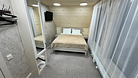 Новый номер с небольшой кухней: холодильник, чайник и посуда — всё под рукой. Номер с одной двуспальной кроватью.