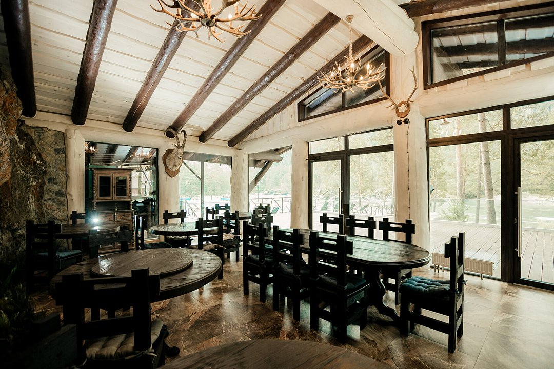 Теплая атмосфера и уют — главная особенность этого зала. Идеально подходит для обеда или ужина с видом на алтайскую природу, а также для индивидуальных событий до 50 человек. В летнее время в ресторане работает открытая терраса.