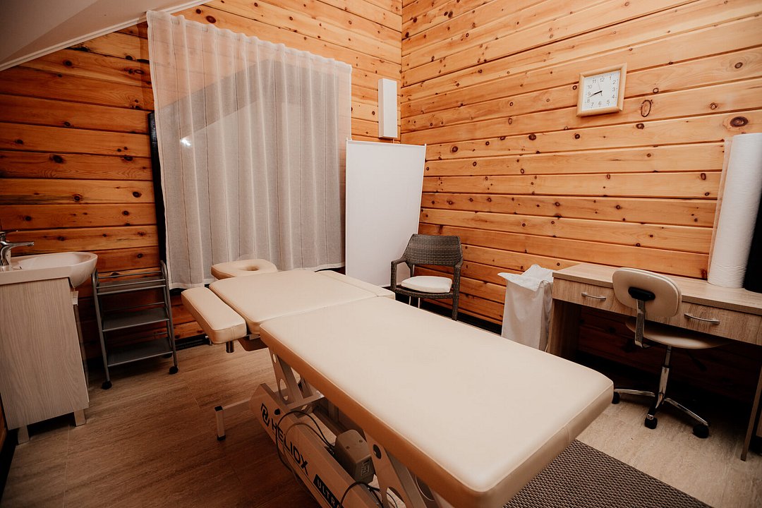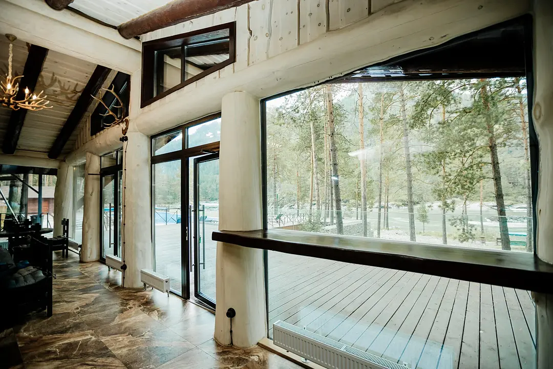 Все процедуры проходят в атмосфере уюта, с видом на лес и горные пейзажи, чтобы вы могли отключиться от суеты и вдохнуть чистоту Алтая. Также для гостей отеля доступен тренажерный зал.
