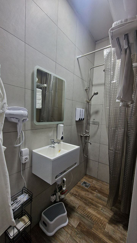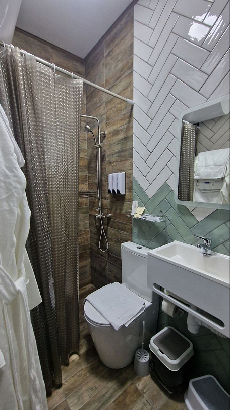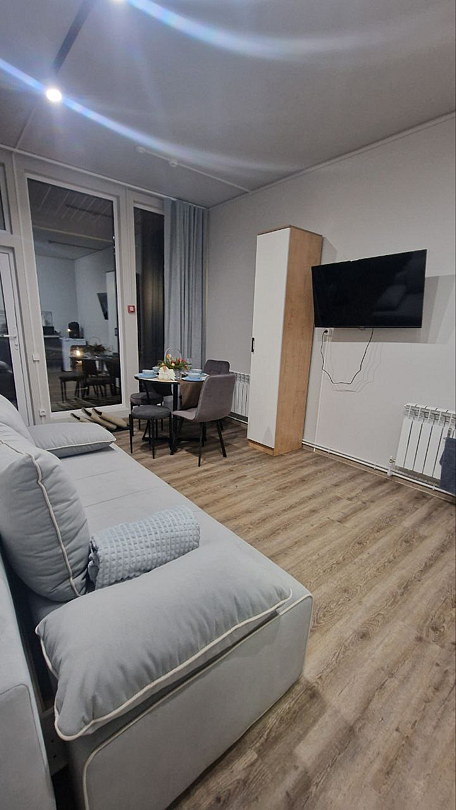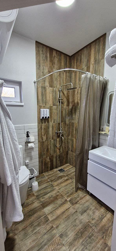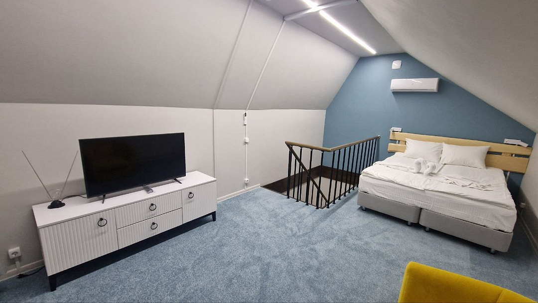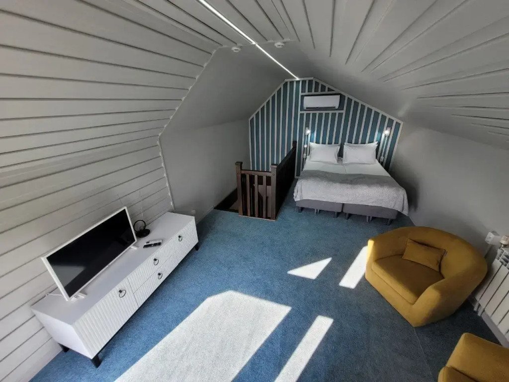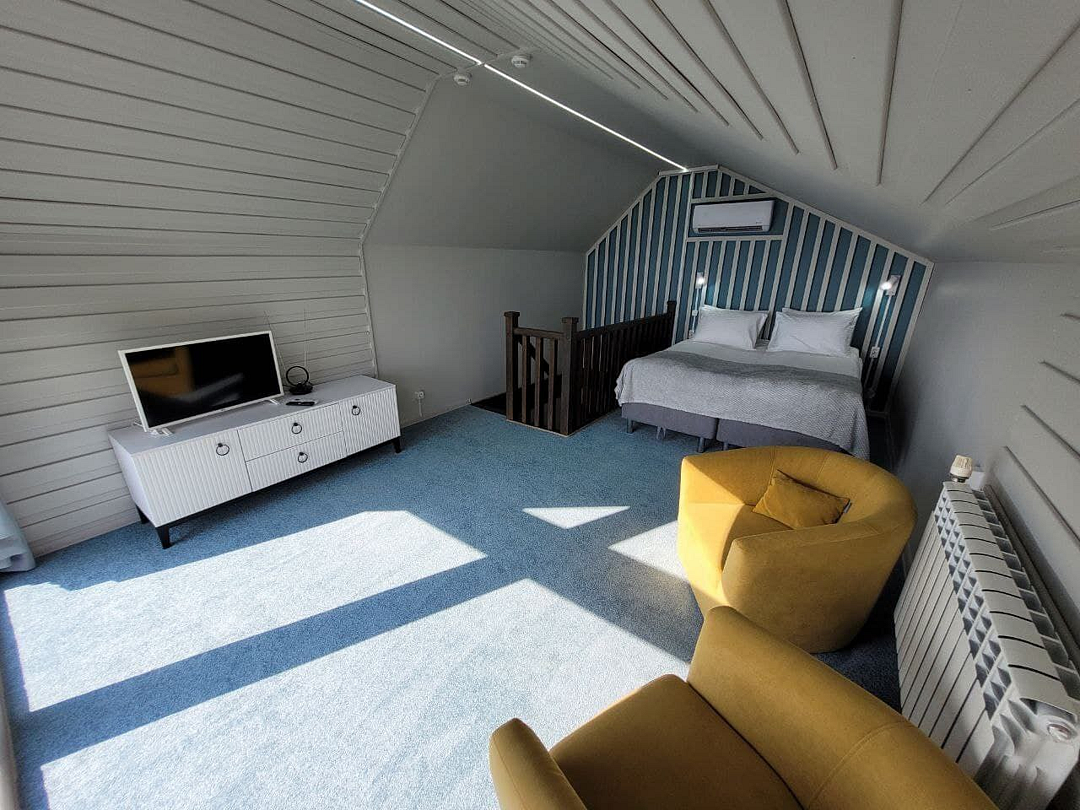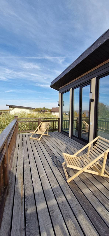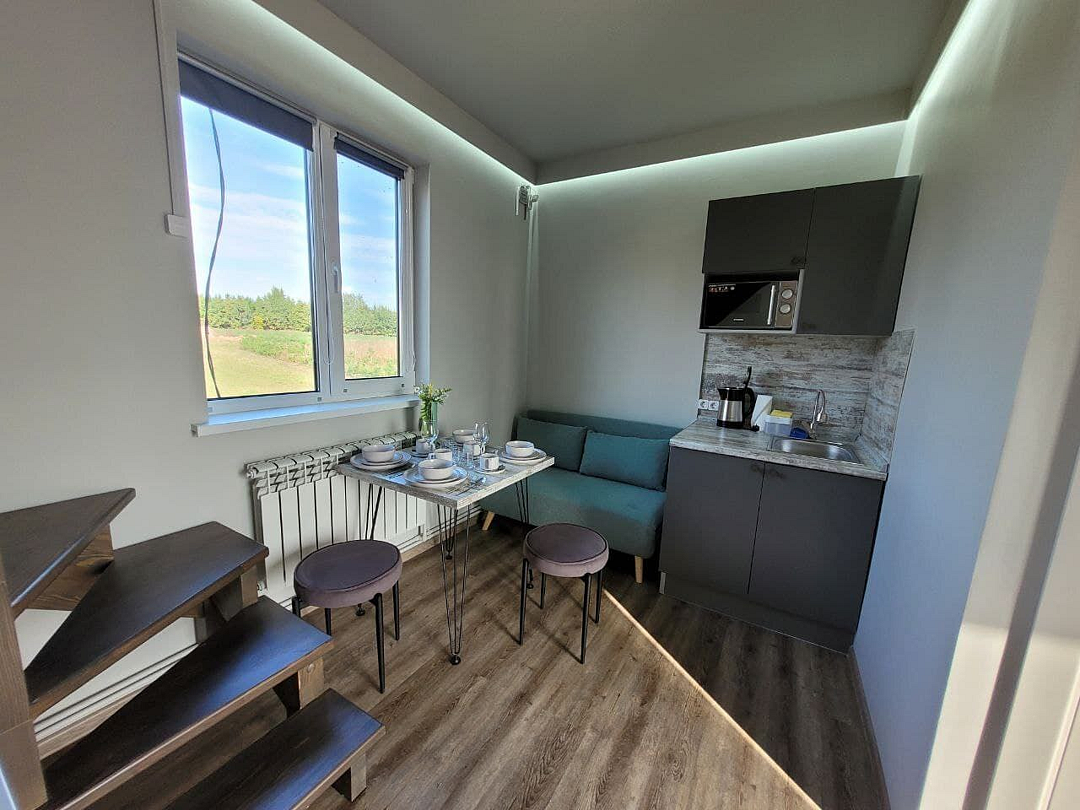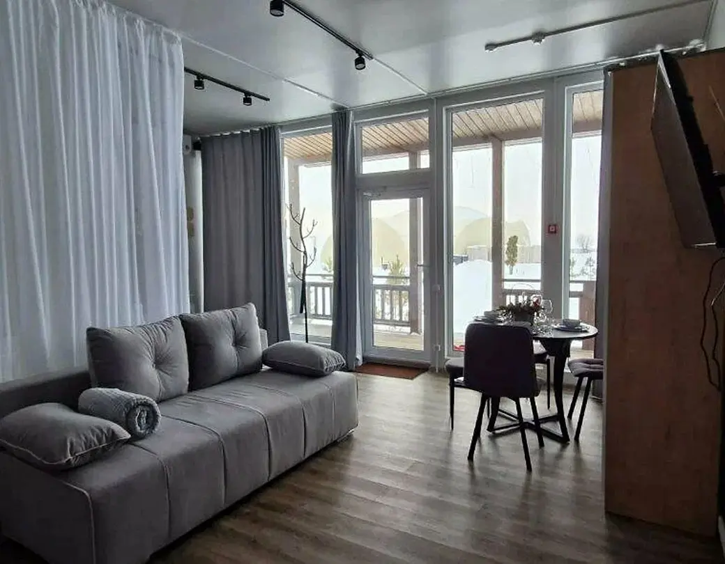 В домике есть: Wi-Fi, телевизор с функцией смарт, музыкальная колонка с караоке, холодильник, микроволновая печь, чайник, посуда, вода, чай, кофе, соль, перец, сахар, спальные места повышенной комфортности, ванные принадлежности, гигиенический набор, халаты, тапочки.