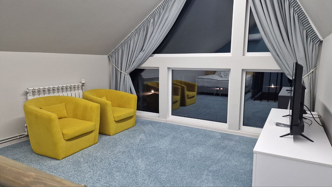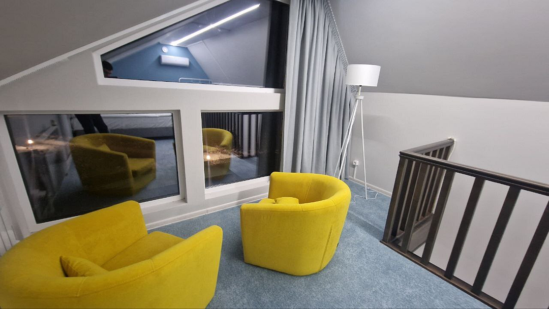 - Просторная комната отдыха (до 20 человек) с банкетным столом, телевизором, музыкальной колонкой.