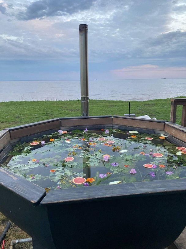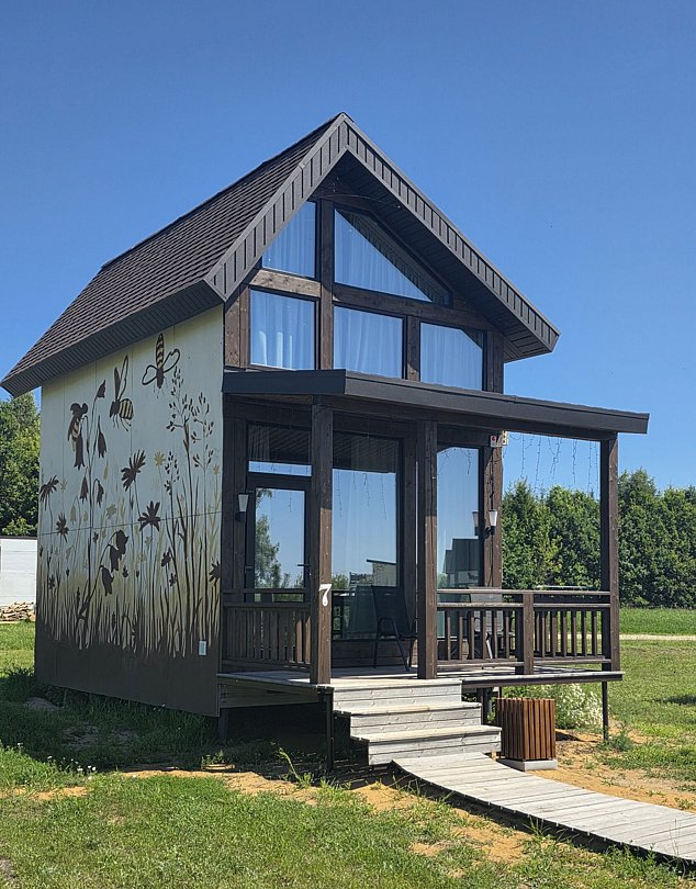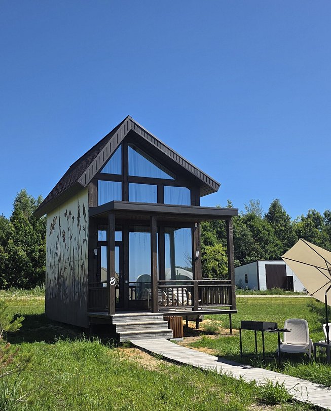 В домике есть: Wi-Fi Телевизор с функцией смарт, музыкальная колонка с караоке, холодильник, микроволновая печь, чайник, посуда, вода, чай, кофе, соль, перец, сахар, спальные места повышенной комфортности, гигиенический набор, халаты, тапочки.