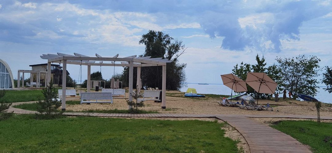 Первая береговая линия и потрясающие закаты над рекой Камой создают неповторимую атмосферу. В шаговой доступности находится современный оборудованный пляж с шезлонгами и бассейном.