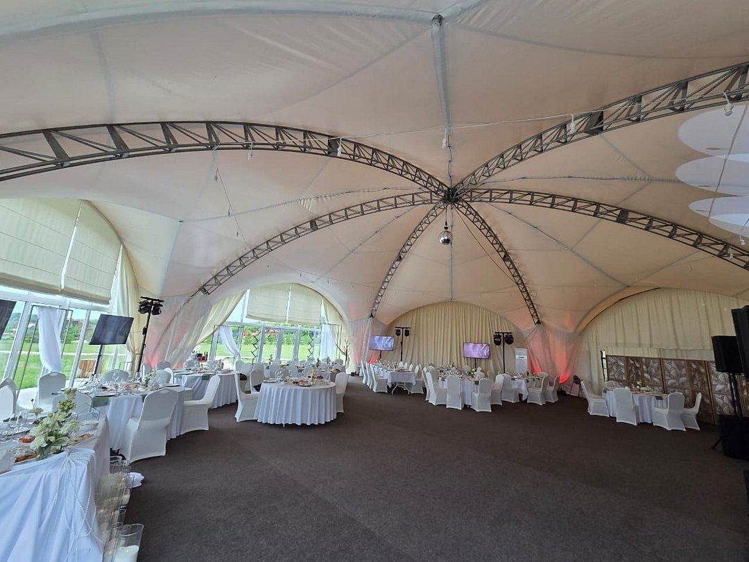 Пространство для мероприятий любого масштаба Шатёр 310 м² идеально подходит для свадеб, банкетов, корпоративов.
