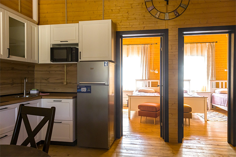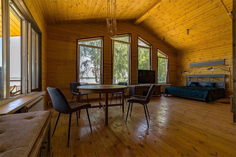 Комфортабельный коттедж на берегу Рыбинского водохранилища. В коттедже полностью оборудованная кухня-гостиная, две раздельные спальни на 4 человека, санузел с душевой кабиной. Возможность размещения дополнительного гостя на раскладном диване в гостиной. Свои веранда и мангальная зона. Прекрасно подходит для компании 4-5 человек.