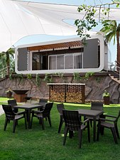 Капсульный модульный домик представляет собой компактное и уютное автономное жилое пространство для полноценного отдыха на природе. Домик стильно оформлен и оснащён всем необходимым для комфортного круглогодичного проживания.