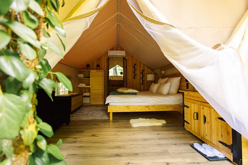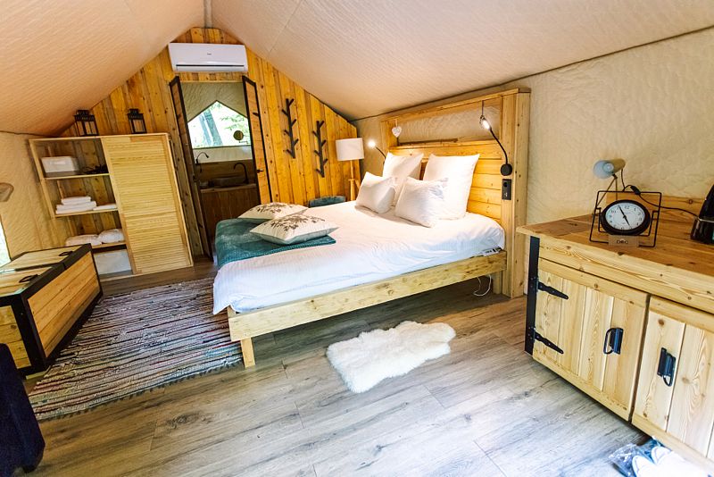 И, конечно же, сами палатки очень комфортные с кучей разных опций в виде подогреваемых полов, кондиционера и очень удобно организовано всё. Всё-таки это палатки)