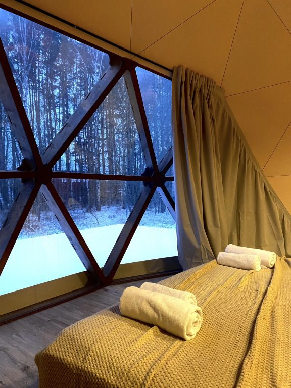 Отдельно стоящие сферы с панорамными видами. Индивидуальная терраса с видом на лес. 3 сферы с авторским дизайном, соединяющим историю и современность.