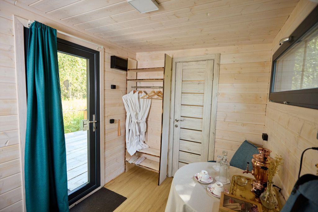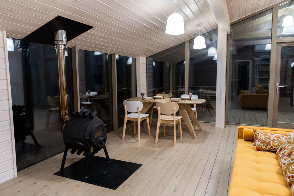 2 спальни, просторная кухня-гостиная с печью, панорамные окна с видом на лес и чудесные закаты. Дома находятся в уединении от других объектов размещения и имеют собственную парковку. Идеальный вариант для длительного проживания.
