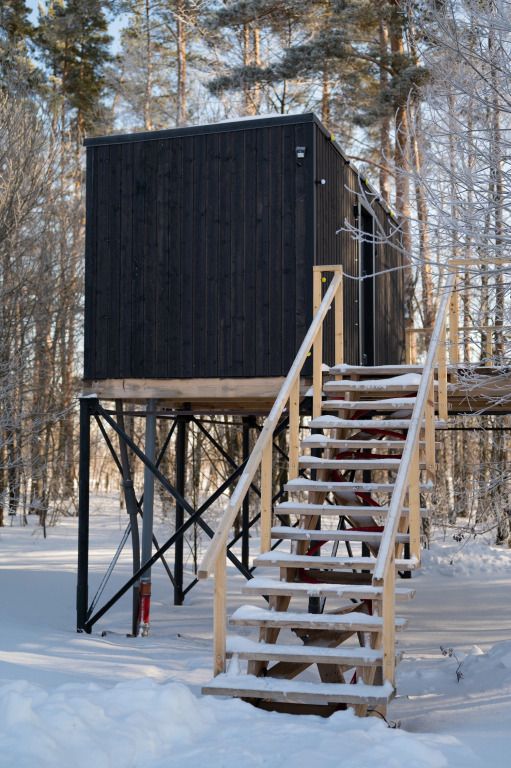 Домик на дереве это удобство и комфорт отельного номера над землёй с видом на сосны. Предназначен для комфортного проживания 2-х взрослых гостей. С террасы открываются прекрасные виды на восход и закат, а также на сосны.
