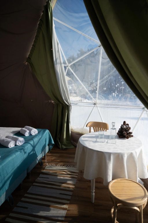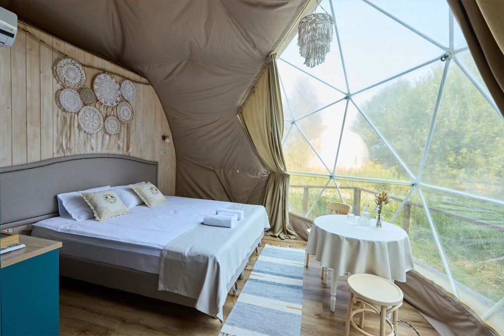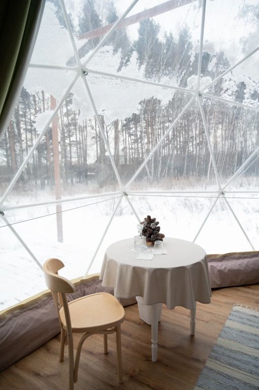 Внутри сферы оборудованы всем необходимым для комфортного размещения до 5 гостей.