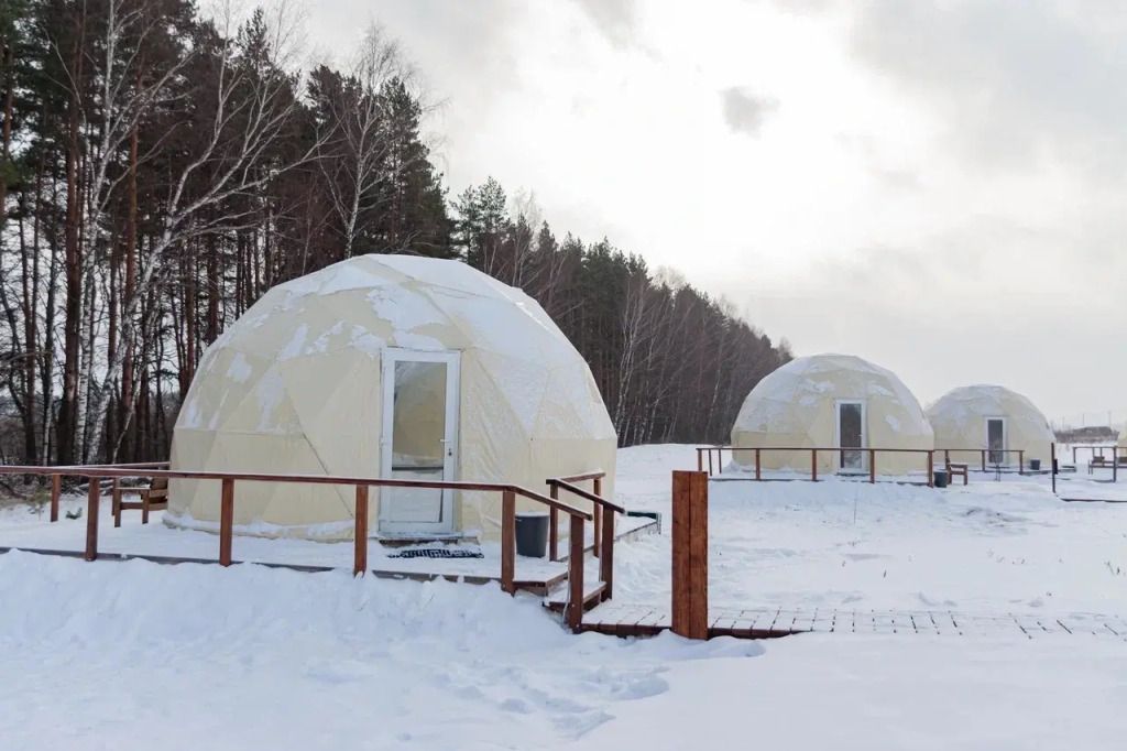 Отдельно стоящие сферы с панорамными видами. Индивидуальная терраса 3 кв.м. 3 сферы с авторским дизайном в новом русском стиле.