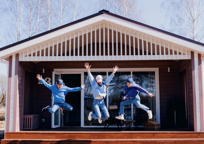 В современных стильных двухкомнатных домах есть полностью оборудованные кухни, что позволяет провести время в кругу семьи или друзей. В каждой из двух комнат уютно разместится по два человека, а пожелания по выбору односпальных или двуспальных кроватей можно указать при бронировании. В каждом доме предусмотрен санузел с современной душевой кабиной, а просторная терраса с видом на озеро и панорамные окна создают атмосферу единения с природой. Здесь вам будет удобно как отдыхать, так и заниматься важными делами — в домах есть рабочие места с достаточным количеством розеток для зарядки гаджетов.