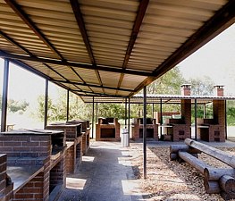 Стационарные и очень удобные мангалы, а также печи для казана расположены под навесами на берегу озера. Здесь есть всё для идеального барбекю: освещение, удобные столы, рядом расположена кухня, где удобно помыть овощи и фрукты, воспользоваться холодильниками, плитами или микроволновой печью. И даже если вы забыли что-то из посуды, это не омрачит ваш отдых. Всё от тарелок до ножей есть в оборудованной кухне. В таких условиях каждый почувствует себя шефом у мангала.