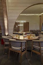 Приятная атмосфера создаётся также благодаря природному антуражу — интерьеры выполнены из дерева и металла, много зелени.