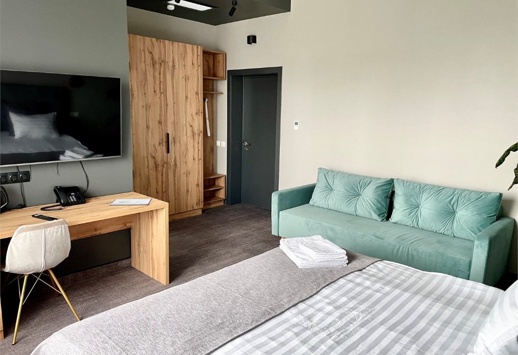 На трех этажах отеля 11 номеров с современным ремонтом, оснащенных необходимыми удобствами. В оформлении использованы качественные материалы, имеется Wi-Fi, система кондиционирования, вентиляции и многоступенчатой очистки воды. Есть собственная ванная комната. Гостеприимный и отзывчивый персонал обеспечит высокий уровень обслуживания и комфортное размещение.