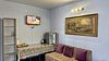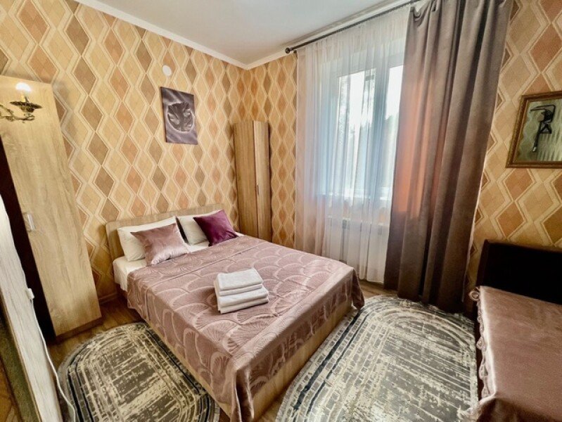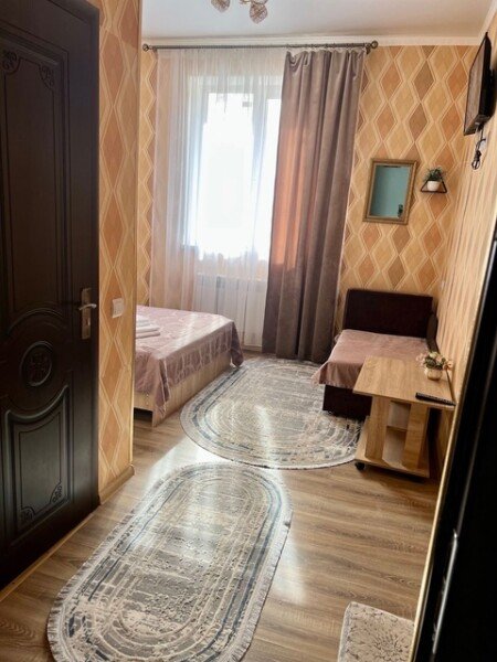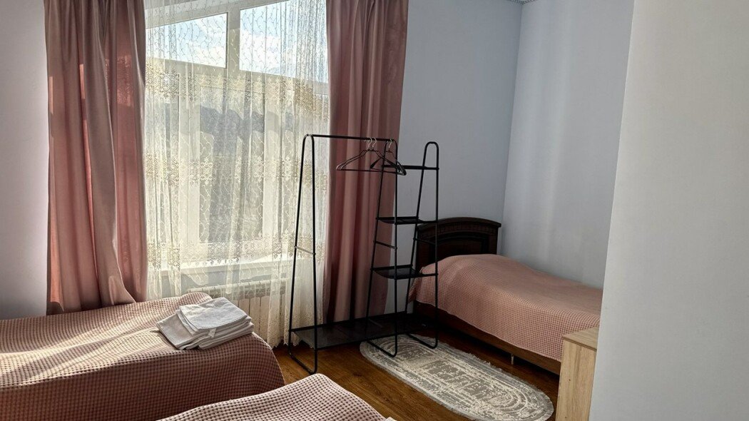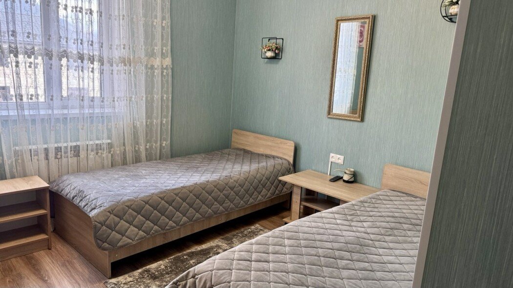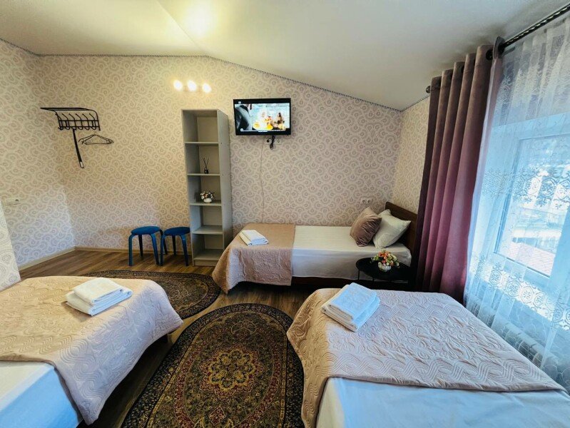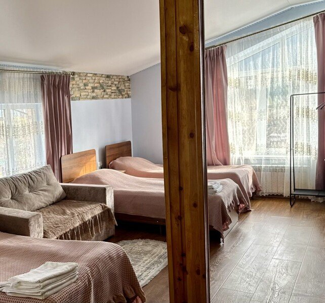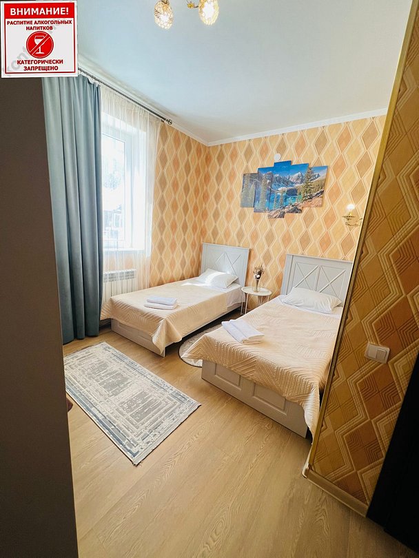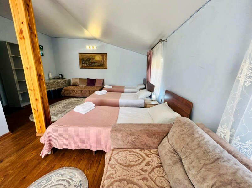 В номере двухъярусная кровать и двуспальная кровать. Во всех номерах ванная комната, все номера оснащены необходимой мебелью: прикроватные тумбочки, столик, шкаф для одежды.