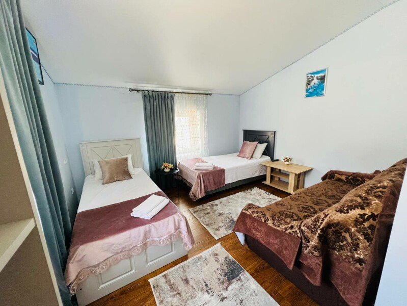 Гостям предлагается размещение в комфортных номерах со всеми удобствами и видом на горы и реку. Все номера оснащены телевизором, Wi-fi, необходимой мебелью и собственной ванной комнатой с душем и гигиеническими принадлежностями.