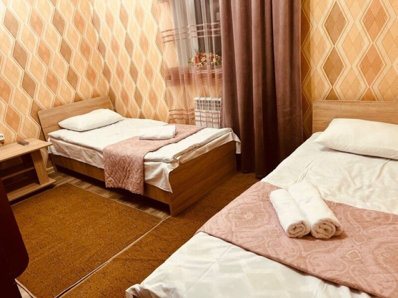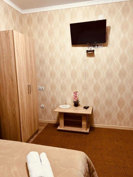 Все номера оснащены ванной комнатой и всей необходимой мебелью: прикроватные тумбочки, столик, шкаф для одежды.
