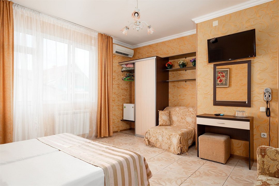 Wi-Fi, кондиционер, фен, две полутораспальные кровати, вешалки, зеркало, сейф, унитаз, раковина, стаканы, стул, туалет, телевизор с плоским экраном, мини-холодильник, без питомцевВ номере
