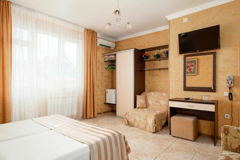 Wi-Fi, кондиционер, банные полотенца, две полутораспальные кровати, тумбы, вешалки, зеркало, сейф, унитаз, душ, стаканы, стул, туалет, диван-кровать, телевизор с плоским экраном, мини-холодильник, без питомцевВ номере