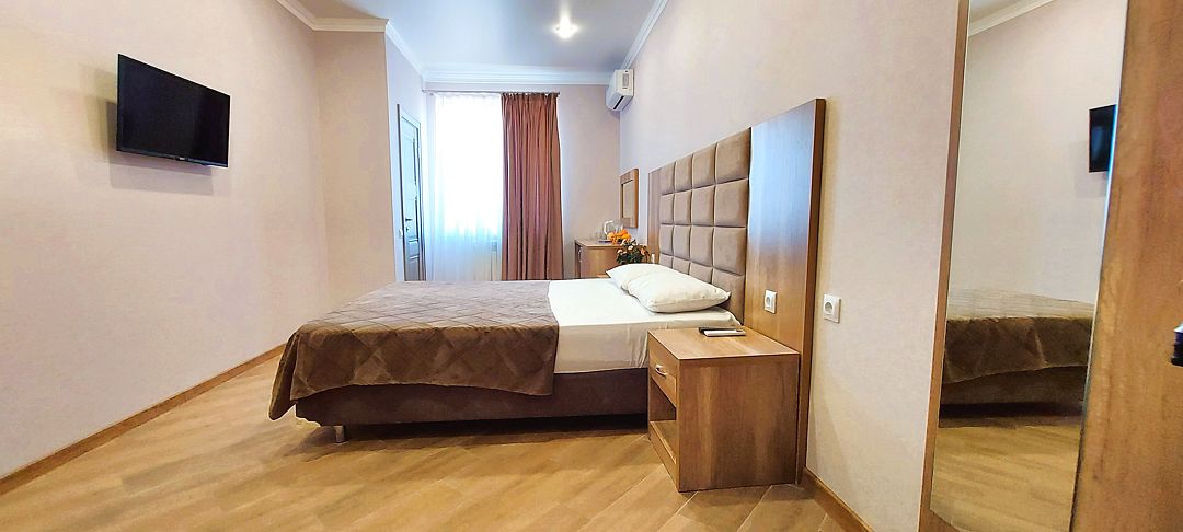 В пользование предоставляются: комфортабельные спальные места, шкаф и прикроватные тумбы для личных вещей, сплит-система для регулирования температуры. В ванной комнате установлен душ, есть фен и набор полотенец. ЖК-телевизор и бесплатный Wi-Fi разнообразят досуг.