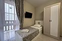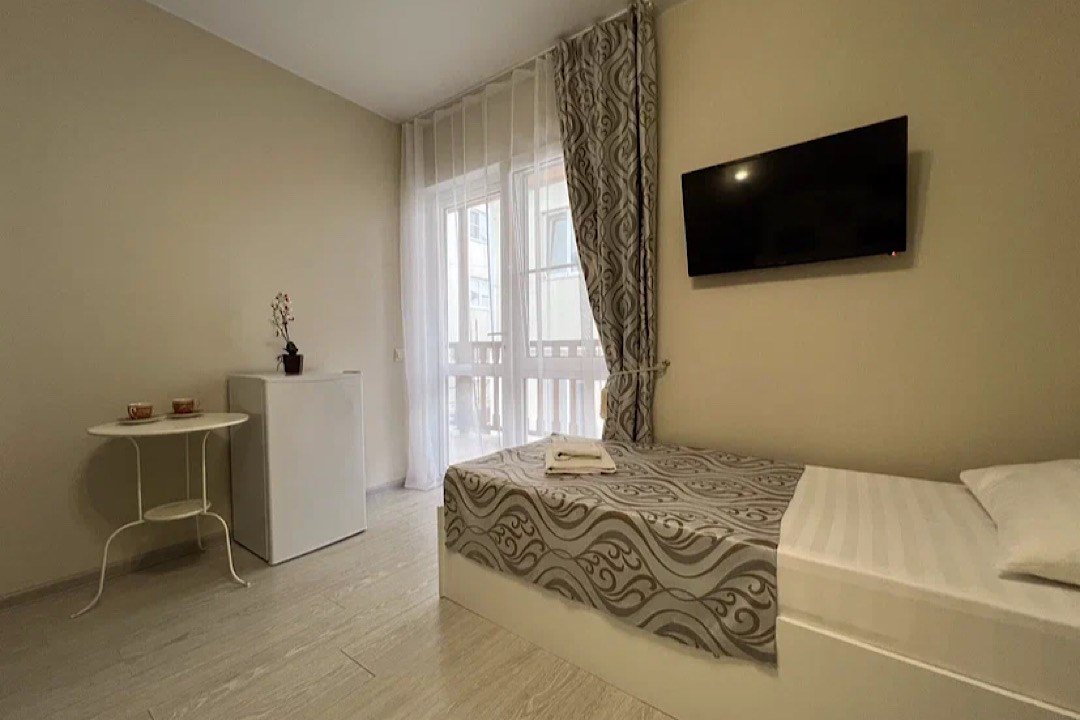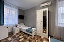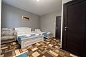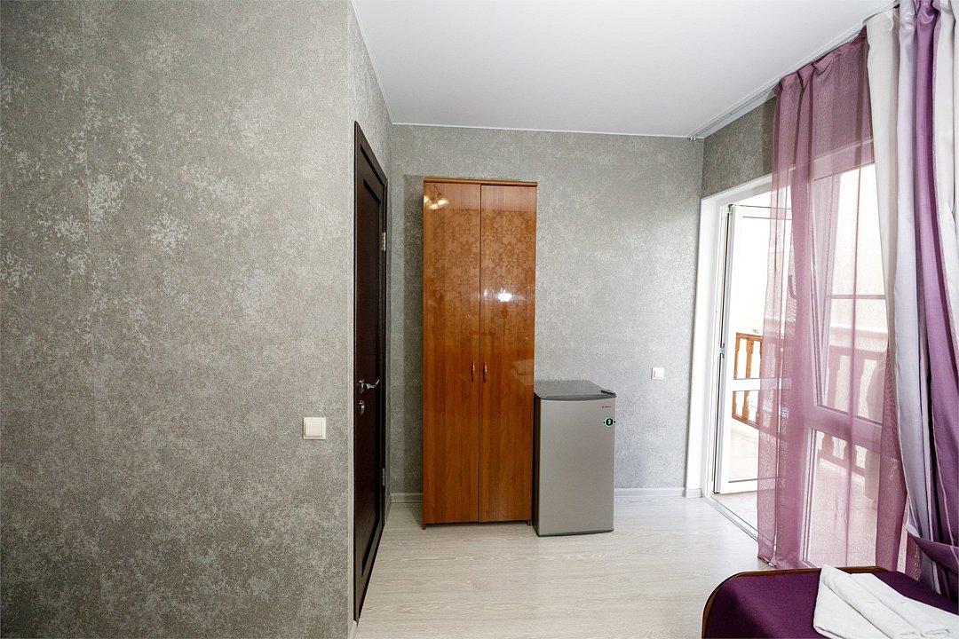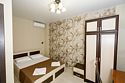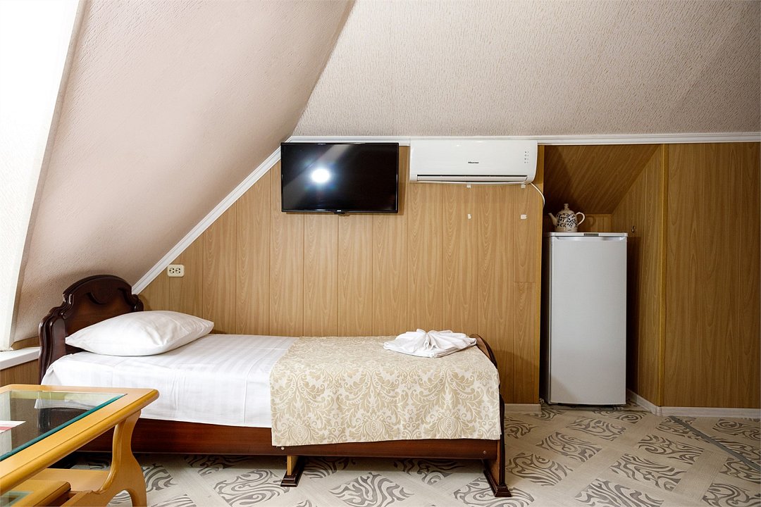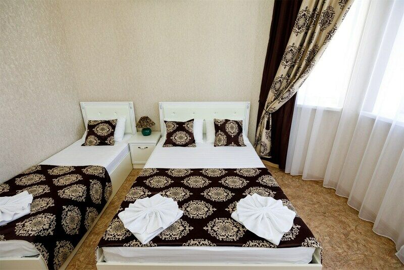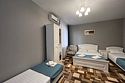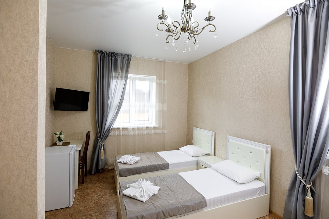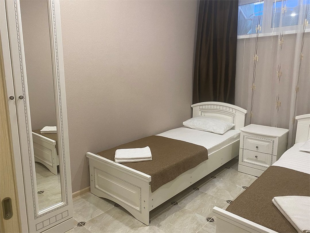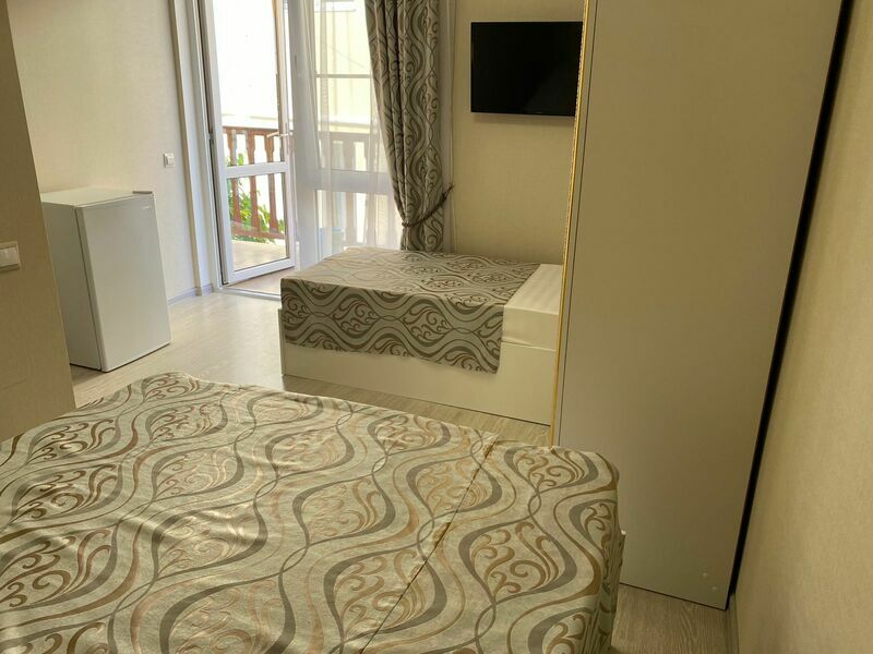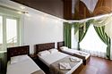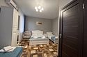 Wi-Fi, холодильник, кондиционер, фен, ванна, банные полотенца, двуспальная кровать, две односпальные кровати, шкаф для одежды, вешалки, журнальный столик, зеркало, пуфики, душ, вид во двор, тумба, туалетные средства, телевизор с плоским экраномВ номере