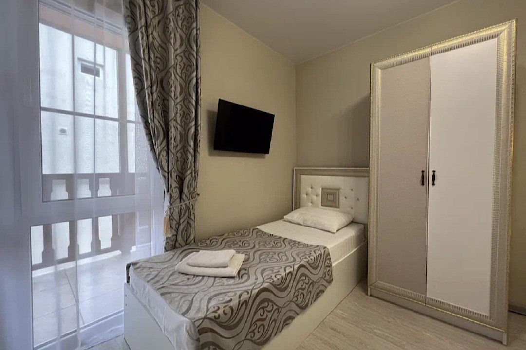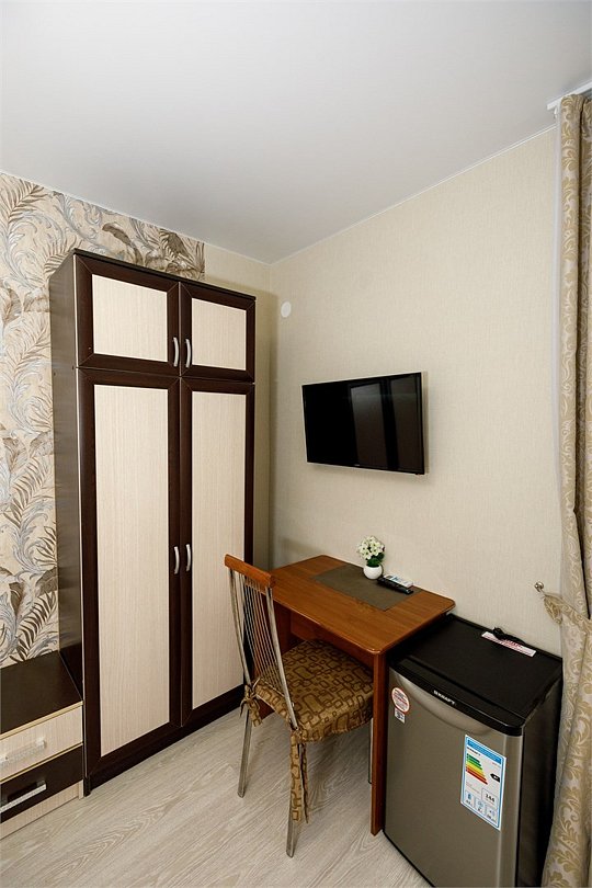 Wi-Fi, холодильник, кондиционер, фен, ванна, банные полотенца, двуспальная кровать, односпальная кровать, тумбы, шкаф для одежды, вешалки, письменный стол, зеркало, душ, вид во двор, стул, туалетные средства, телевизор с плоским экраномВ номере