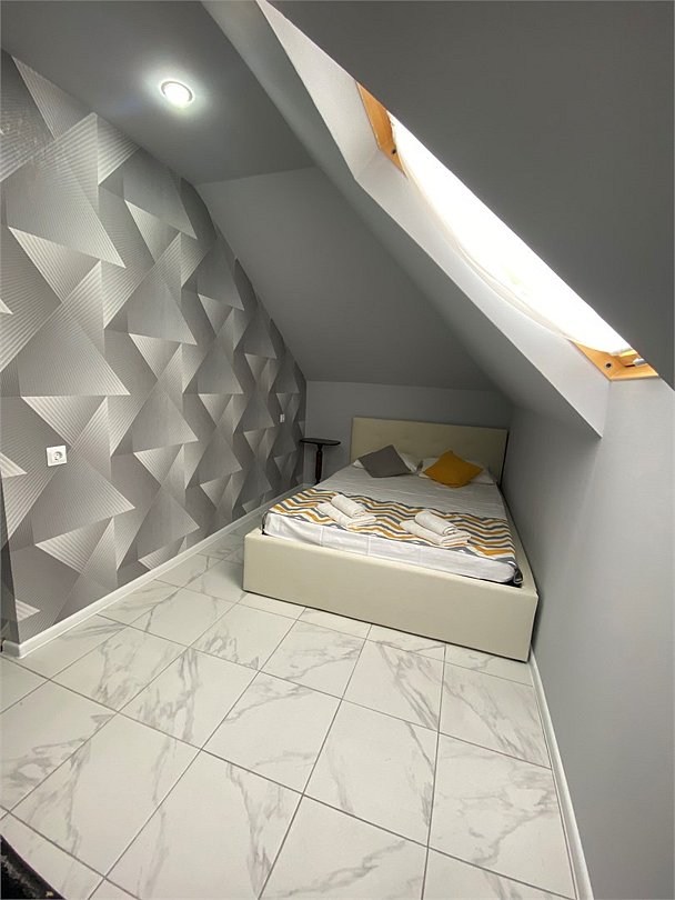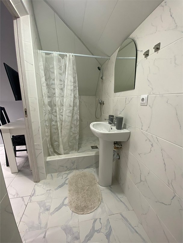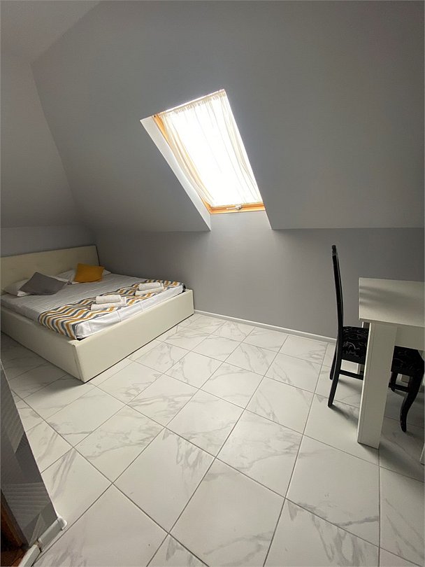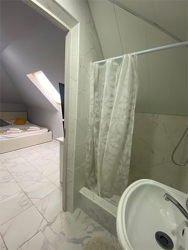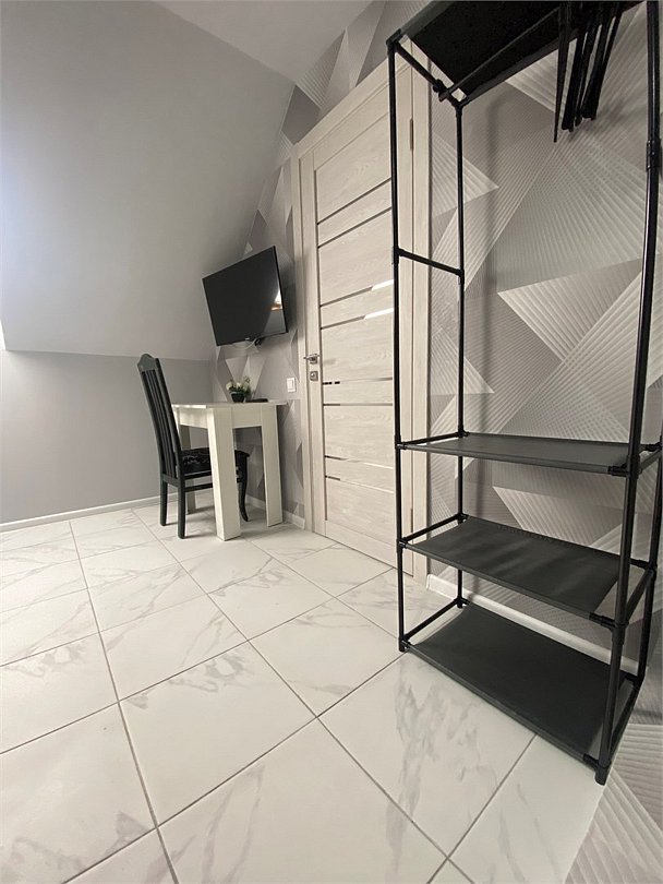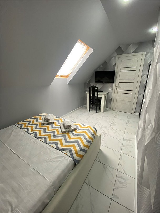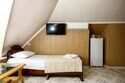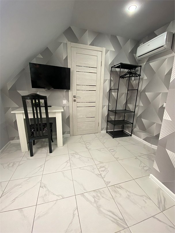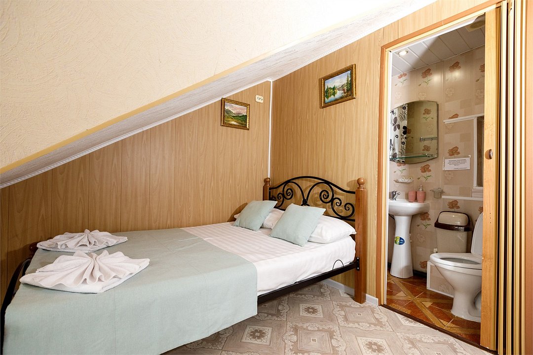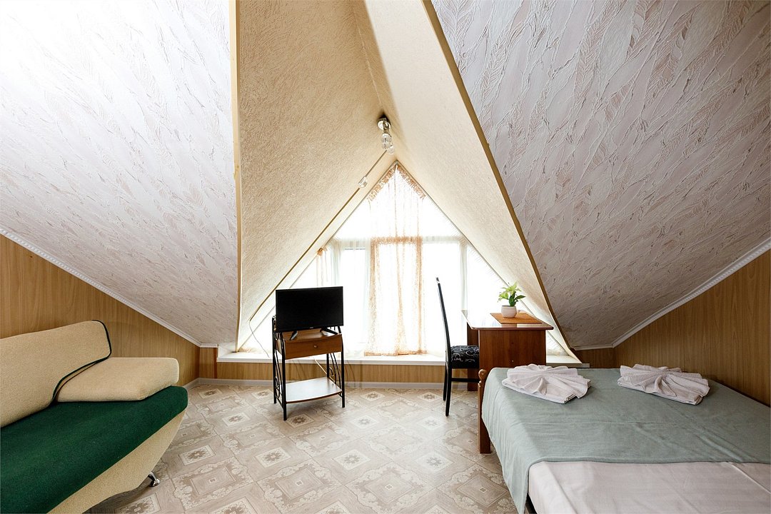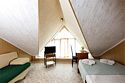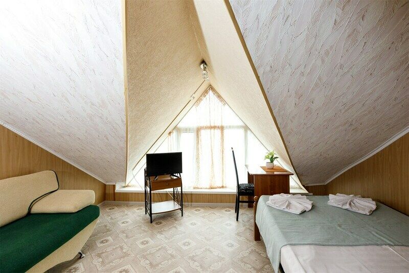 кабельное телевидение, Wi-Fi, кондиционер, фен, банные полотенца, шкаф для одежды, письменный стол, зеркало, душ, стул, тумба, туалет, телевизор с плоским экраном, мансардные окна, вешалки-плечики, открытый шкафВ номере