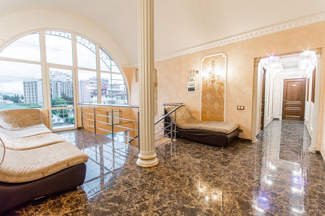 На территории работает летнее кафе, также в распоряжении гостей уличная парковка. А в 5 минутах ходьбы – городской пляж. На галечном побережье все предусмотрено для комфортного пляжного отдыха. К услугам отдыхающих – шезлонги, навесы, лежаки, на пляже работают бары, кафе и пункты проката пляжных принадлежностей.