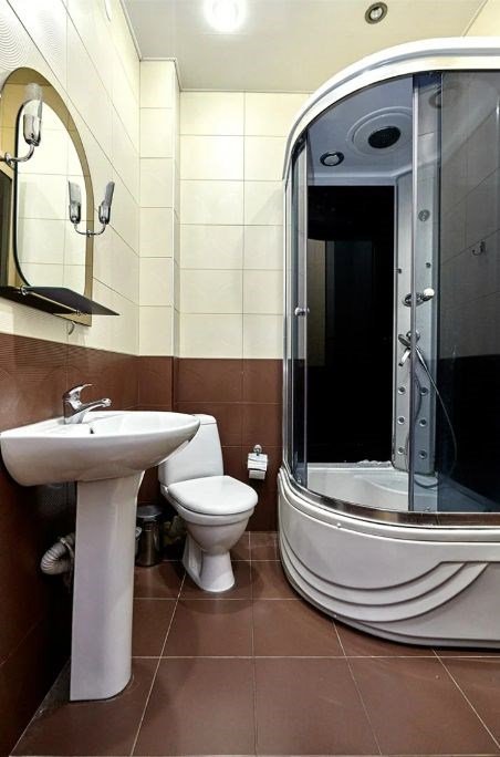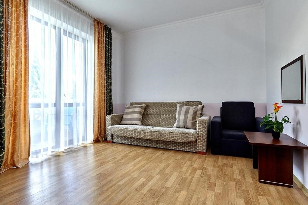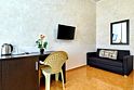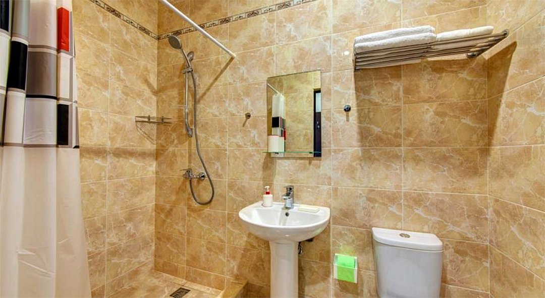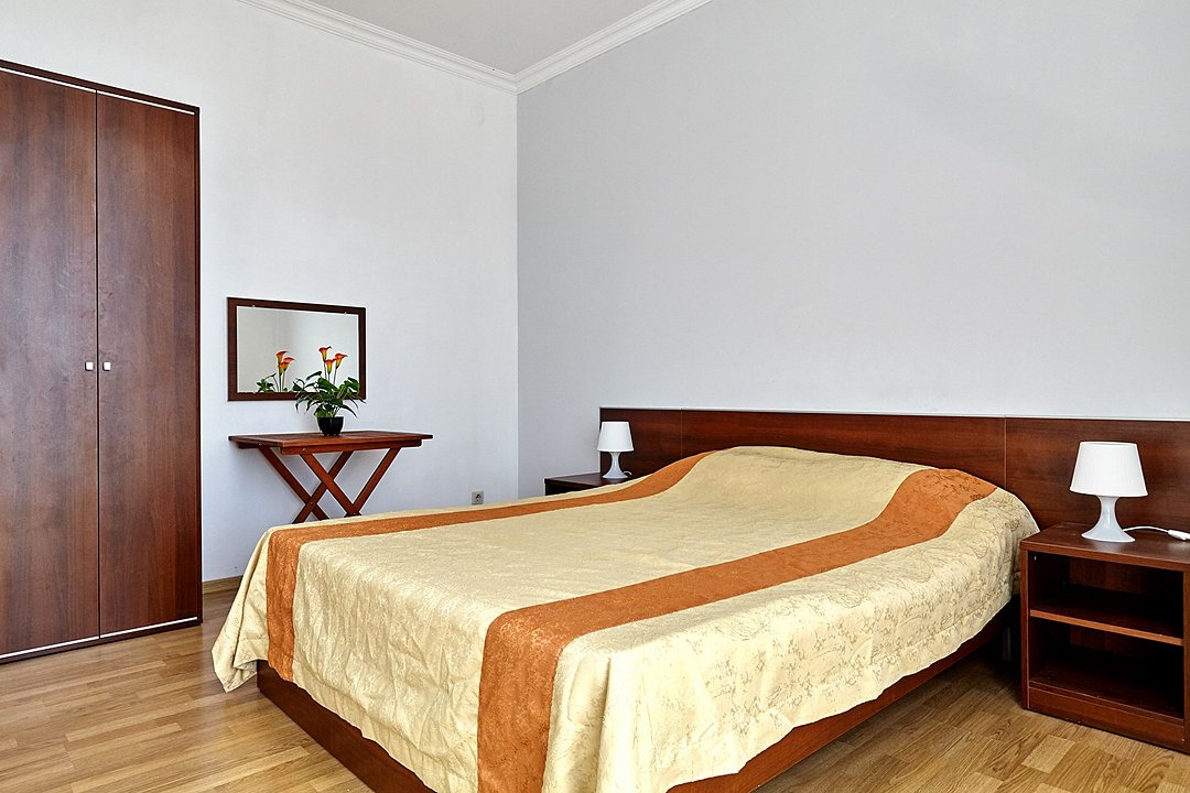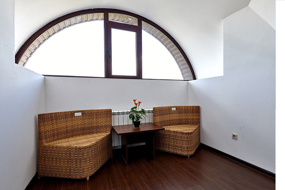 Номера с удобствами оборудованы всем необходимым для комфортного отдыха. Две односпальные или одна двухспальная кровать.В каждом номере сплит-система, телевизор с плоским экраном, холодильник, электрочайник, набор посуды, фен, собственная ванная комната с душем, зеркало, стол и стулья, 2 тумбочки, шкаф, набор полотенец, балкон.Услуги и удобства