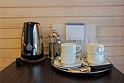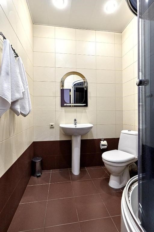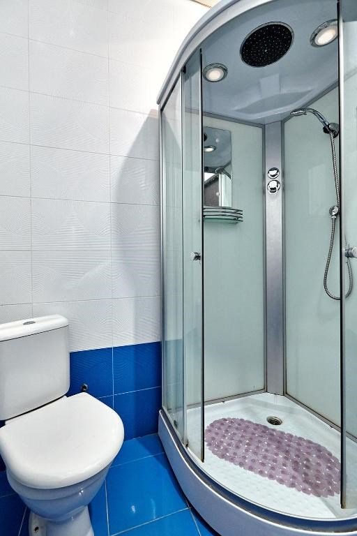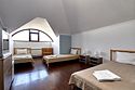 Номера с удобствами оборудованы всем необходимым для комфортного отдыха. Две двухспальные и две односпальные кровати. В каждом номере сплит-система, телевизор с плоским экраном, холодильник, электрочайник, набор посуды, фен, собственная ванная комната с душем, зеркало, стол и стулья, 2 тумбочки, шкаф, набор полотенец. Внимание: мансардный номерУслуги и удобства
