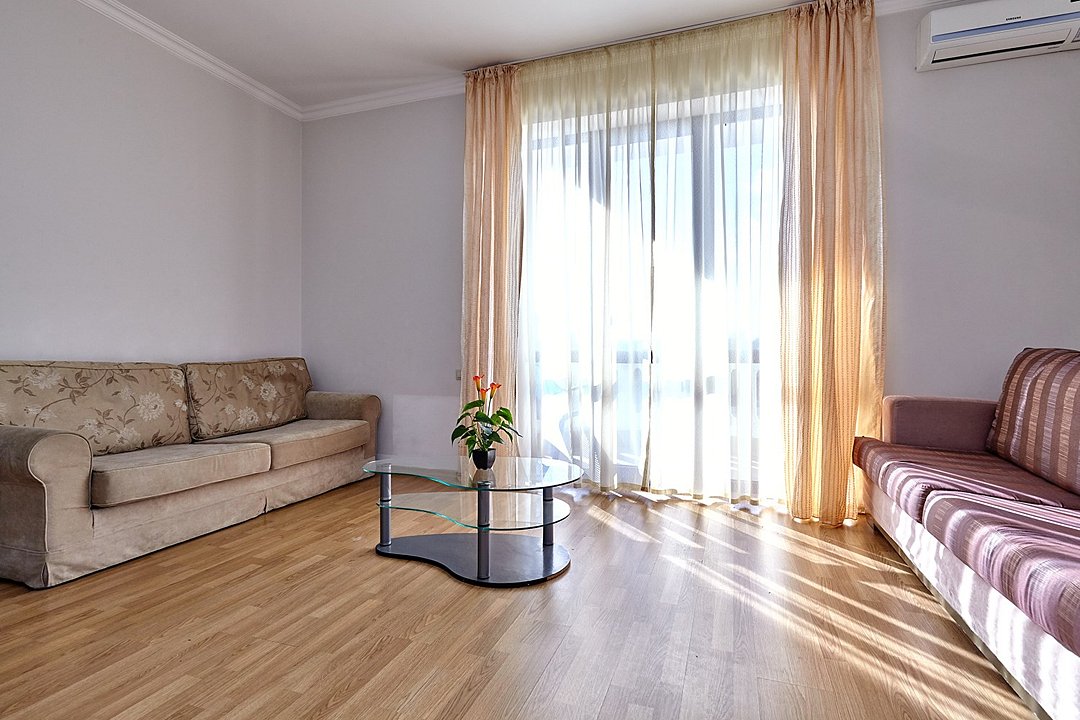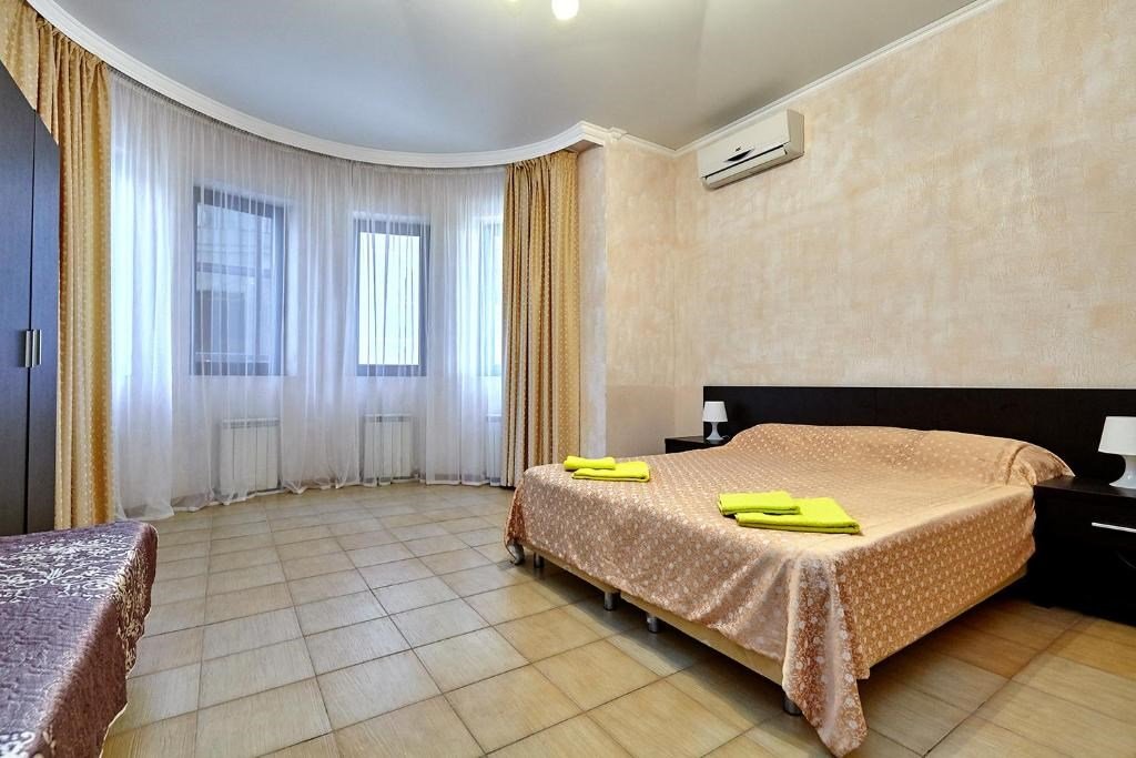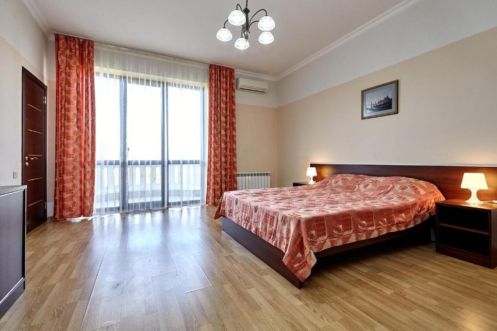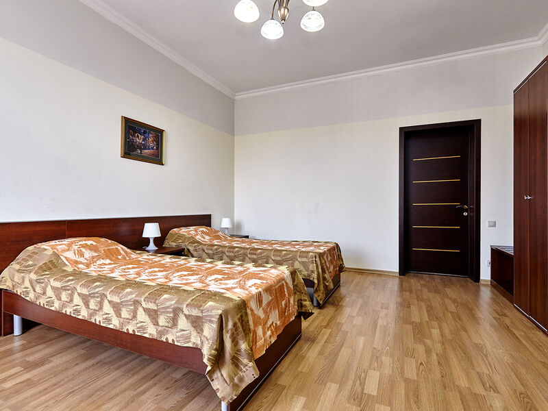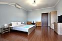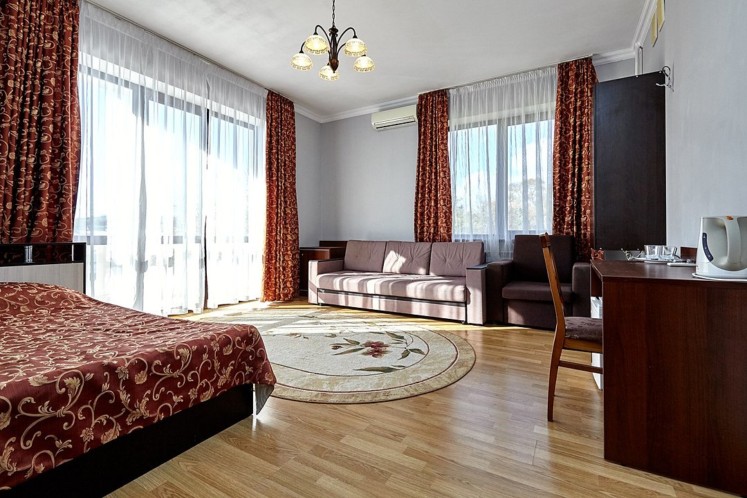 Номера с удобствами оборудованы всем необходимым для комфортного отдыха. Двухспальная кровать и два односпальных дивана.В каждом номере сплит-система, телевизор с плоским экраном,холодильник,электрочайник,набор посуды,фен,собственная ванная комната с душем,зеркало,,стол и стулья,2 тумбочки,шкаф,набор полотенец,2 балкона.Услуги и удобства