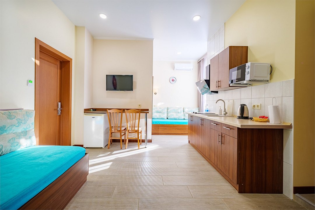 Двухкомнатный номер-студия с кухней - идеальный выбор для семьи!