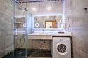 В номере 1 двуспальная кровать, 1 односпальная кровать и 1 тахта (в которой используется полноценный ортопедический матрас). Мини-кухня с двухконфорочной газовой плитой. В номере имеется стиральная машина.