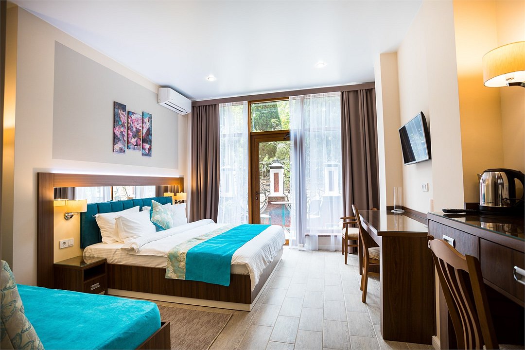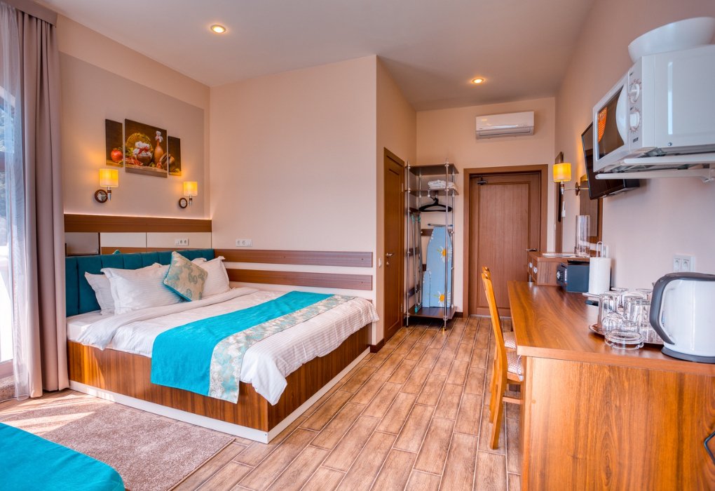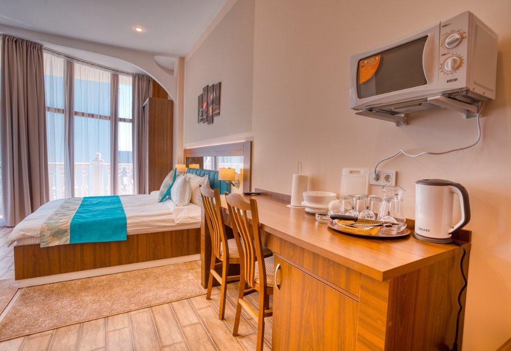 Для проживания гостей подготовлены комфортабельные номера с интерьером, выдержанным в стиле лучших европейских домов. В распоряжении отдыхающих уютная зона отдыха с панорамным видом на море, где можно не только покушать, но и приятно провести досуг. На всей территории работает Wi-Fi.