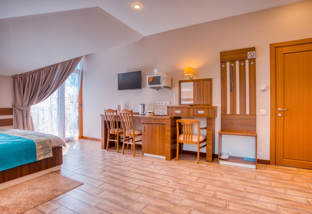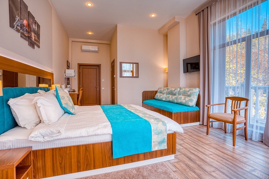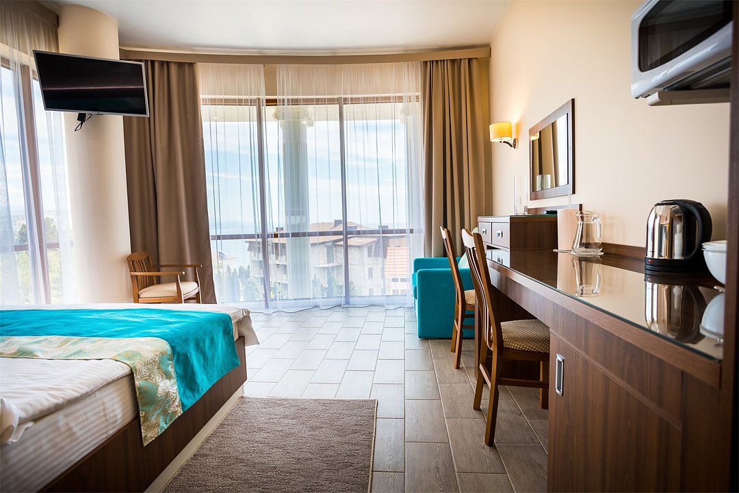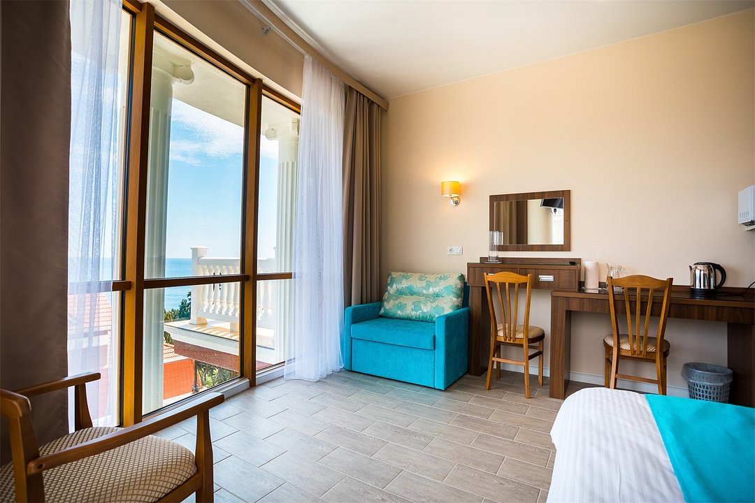 Компактный, но комфортный номер с небольшим балконом и частичным видом на море.