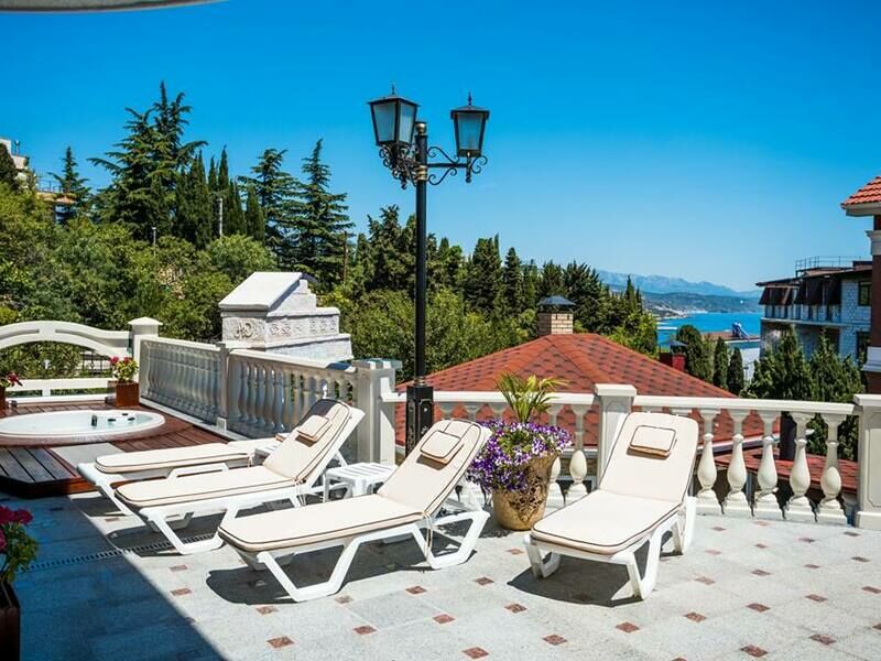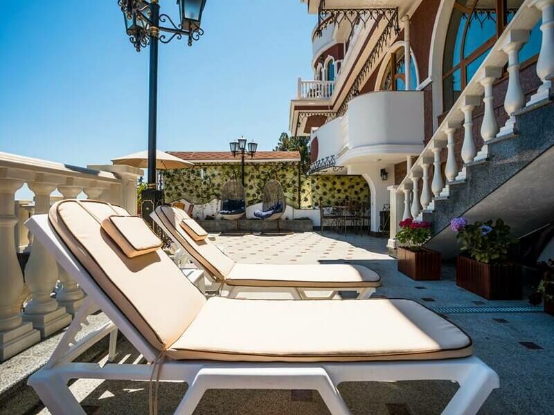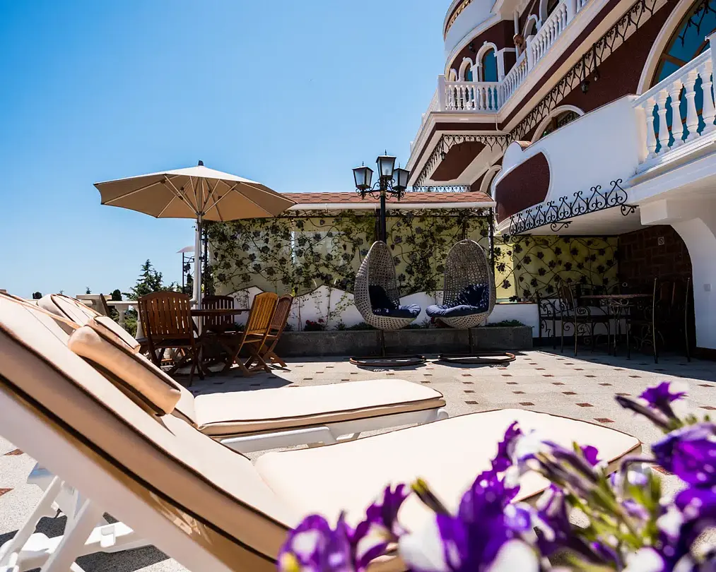 - зоной отдыха, из которой гости могут любоваться видом на море.