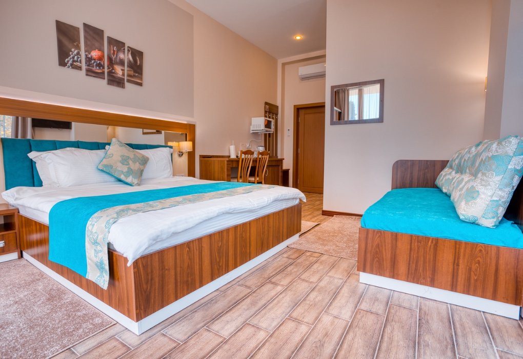 В номере 1 двуспальная кровать и тахта (в которой используется полноценный ортопедический матрас).