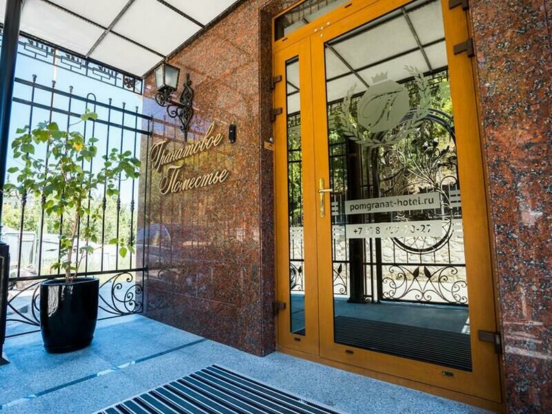 В одном цельном архитектурном комплексе расположены два объекта размещения, одним из которых является «Гранатовое Поместье», занимающий правое крыло здания (корпус А) и нижестоящее здание (Корпус Б). Поместье располагает закрытой территорией с джакузи, садовым домиком с барбекю, беседкой и качелями на участке.