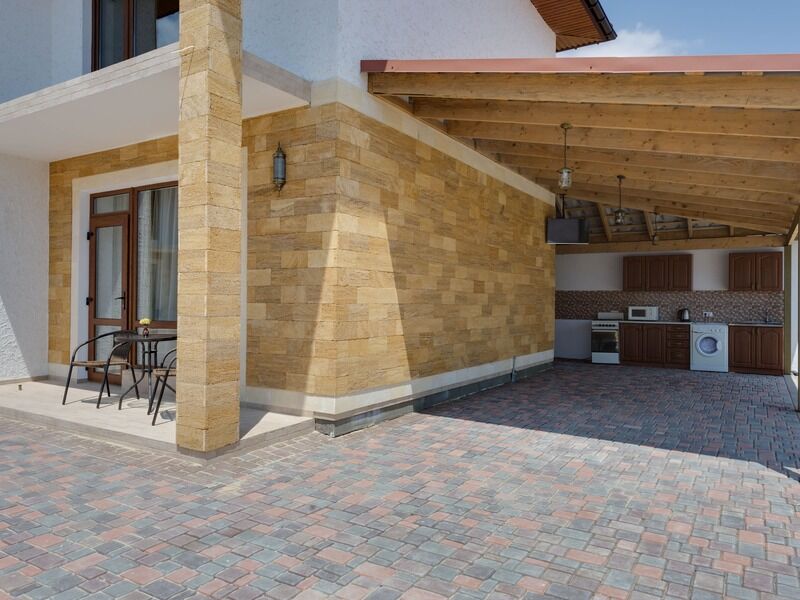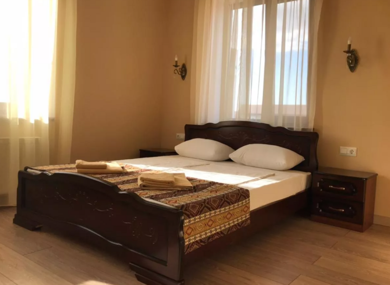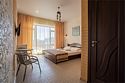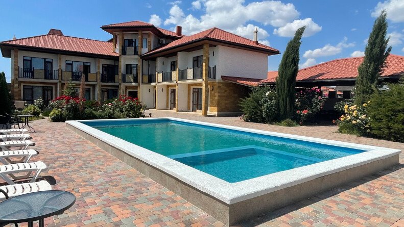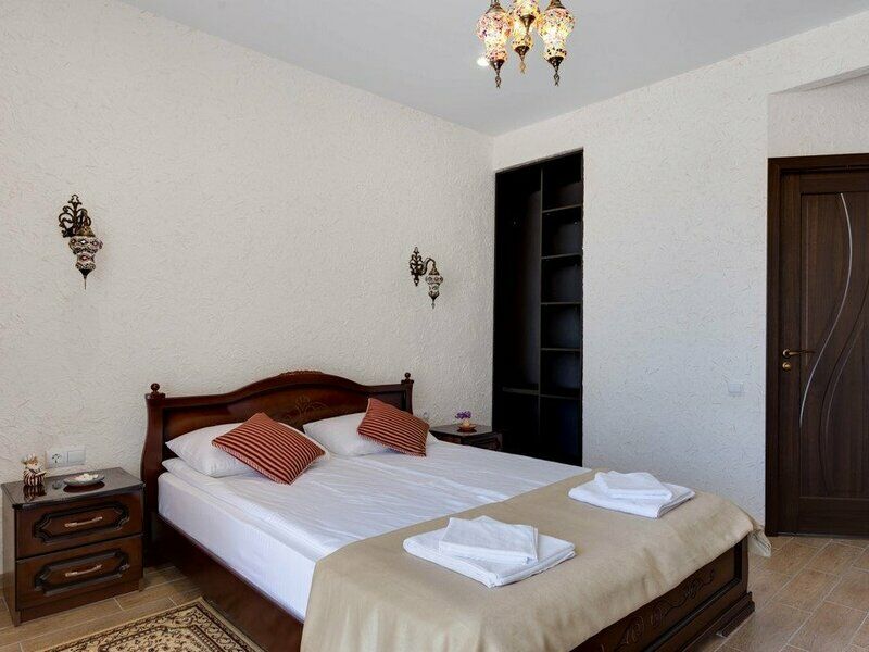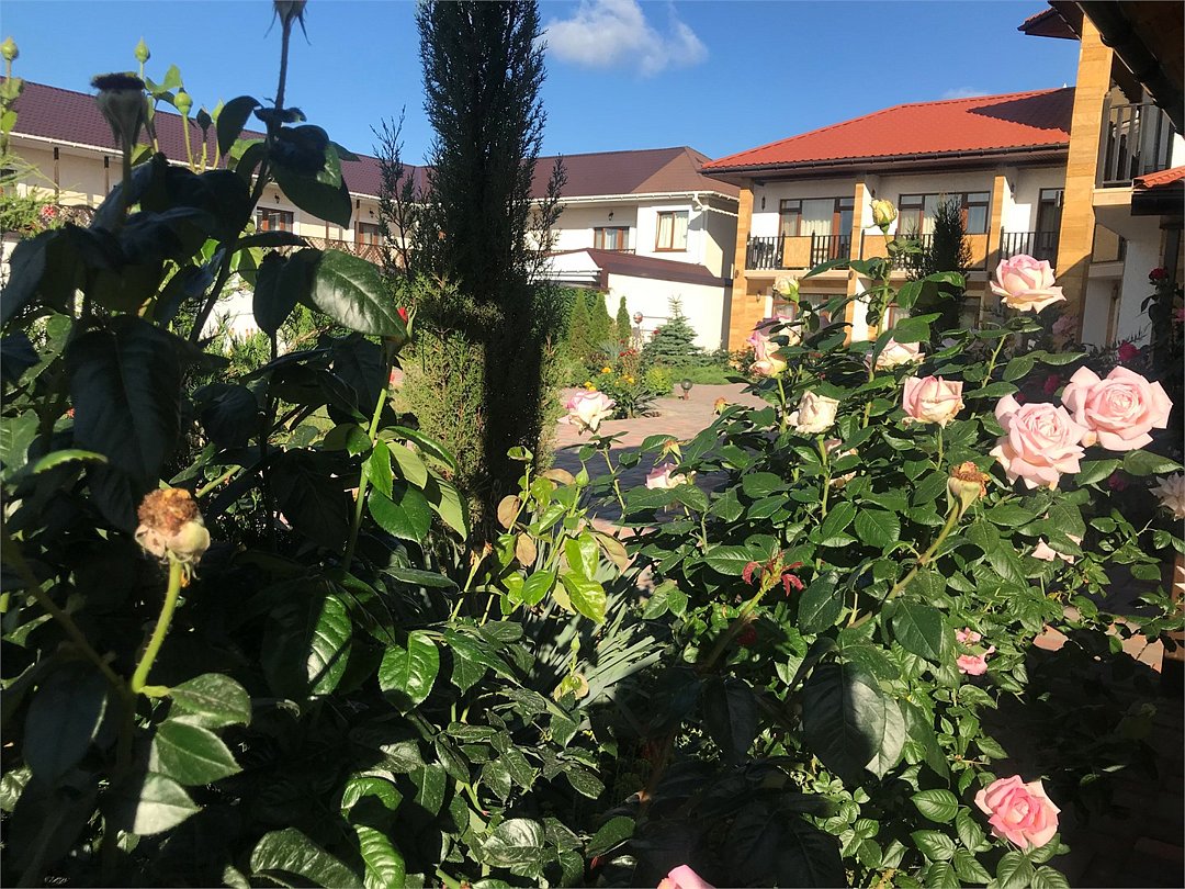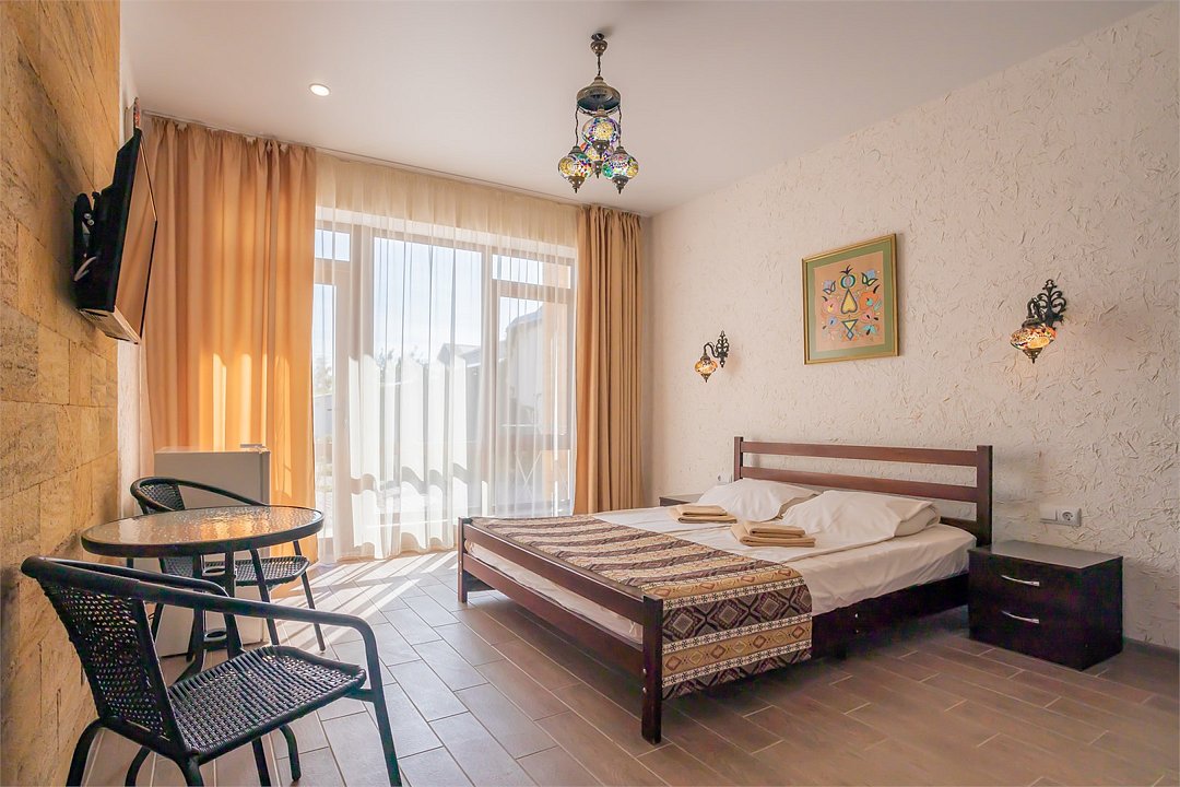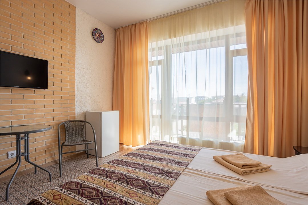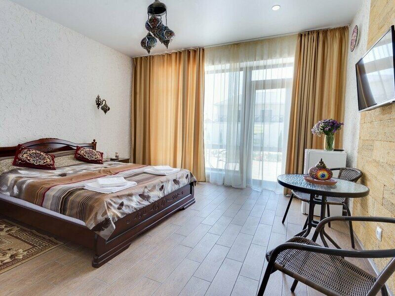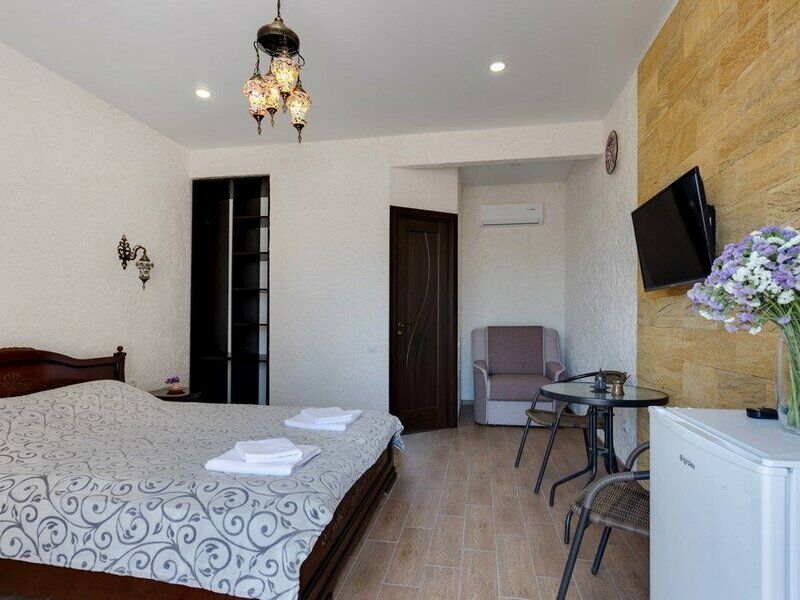 Жилой фонд гостевого дома представлен зданием в два этажа, занимающий небольшую, но при этом закрытую территорию. До побережья Черного моря всего 600 метров. Для заселения гостям предлагаются номера таких категорий как 1-комнатные Стандарт и 2-уровневые Студио. В каждом из номеров предусмотрено наличие санузла, душевой, а также кондиционера и требующейся бытовой техники и мебели.