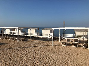 Пляж располагается в нескольких минутах ходьбы от отеля и имеет все необходимое для полноценного отдыха.